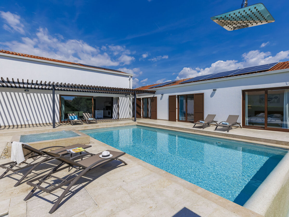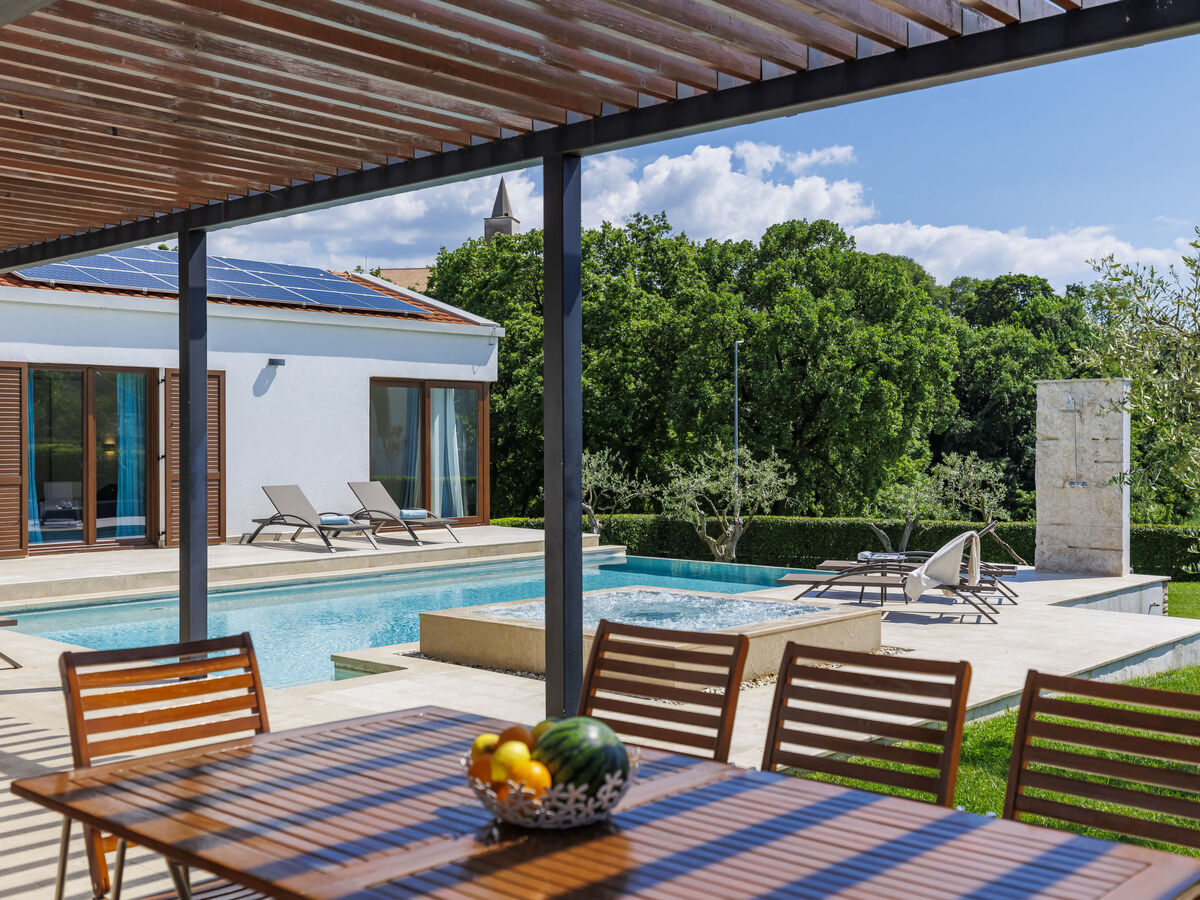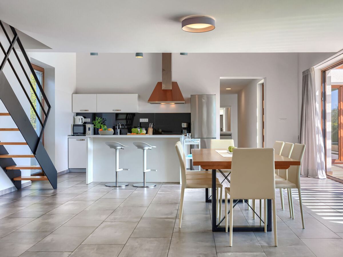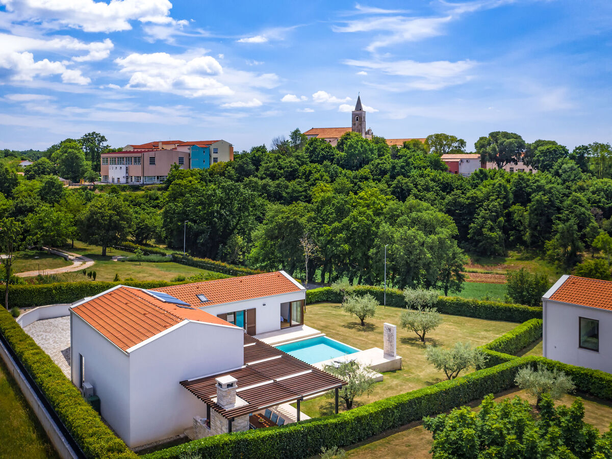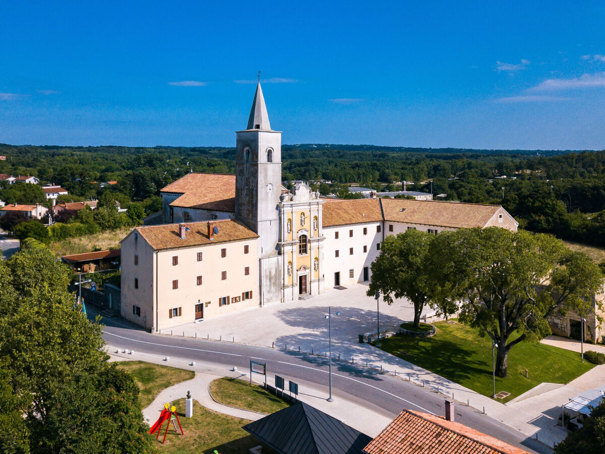 À 6 km du centre de Žminj, à 13 km du centre de Pazin, situation tranquille, ensoleillée, à 27 km de la mer.