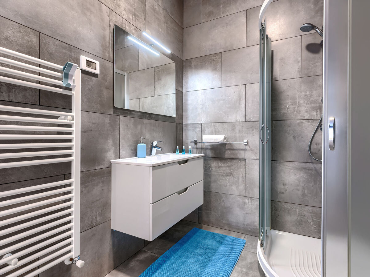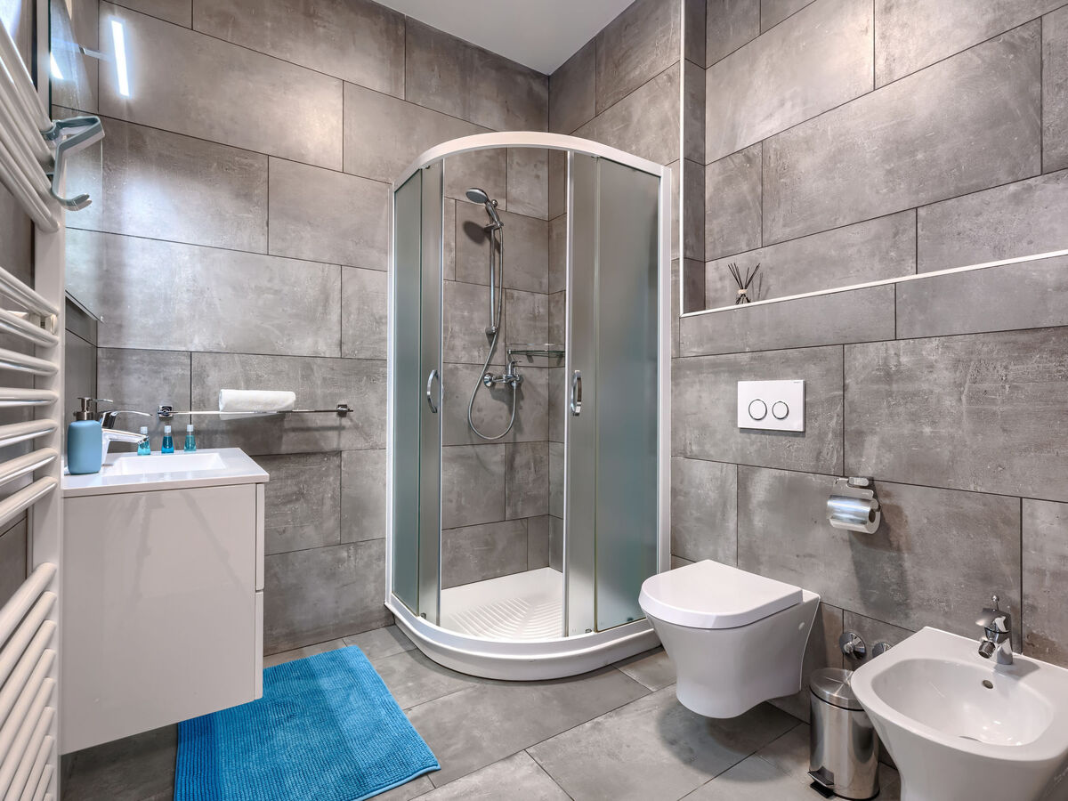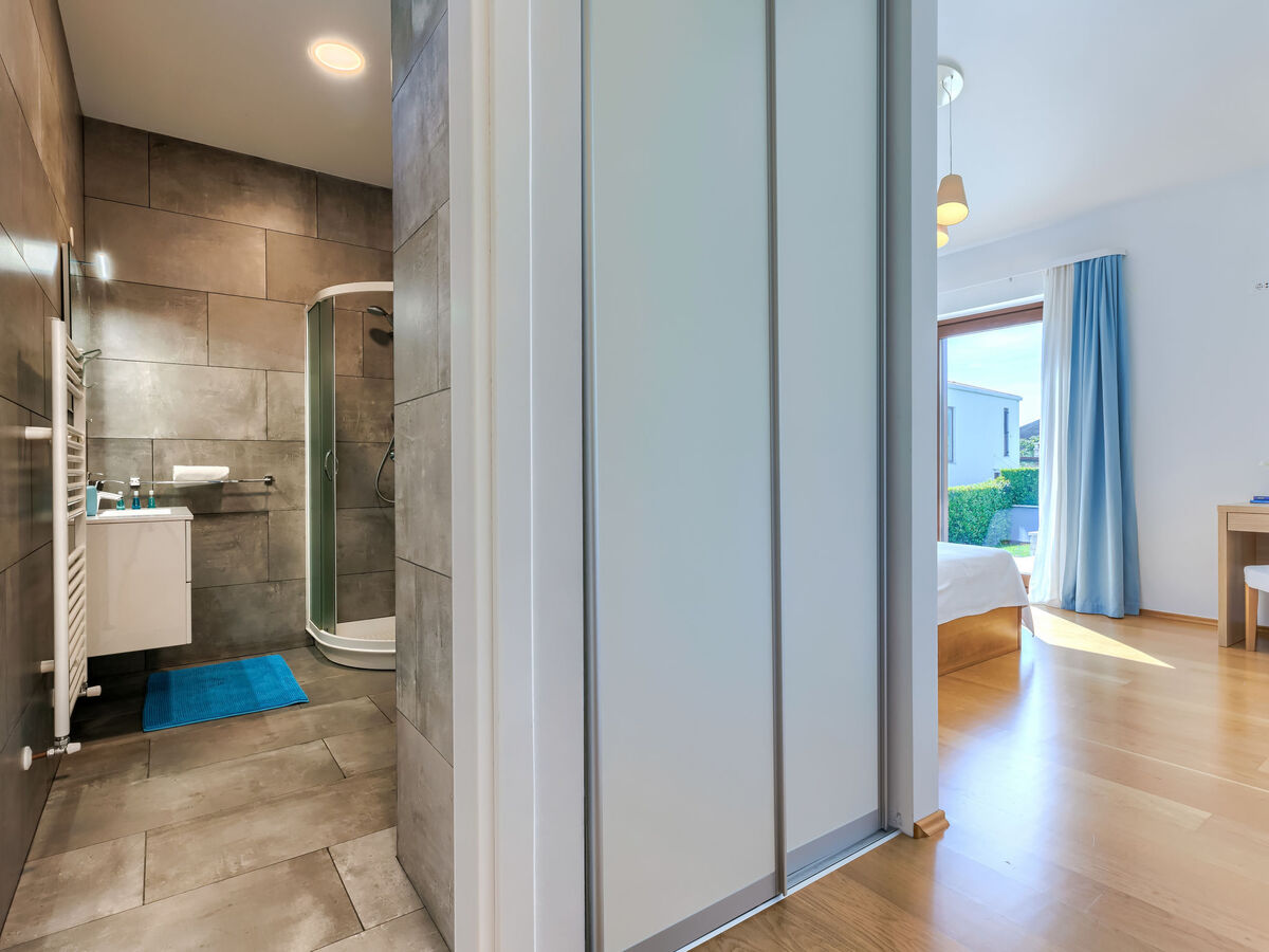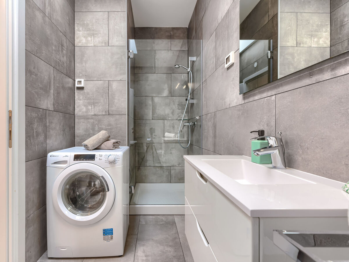 1 chambre avec 1 grand-lit (180 cm, longueur 200 cm), douche/bidet/WC et air-conditionné.