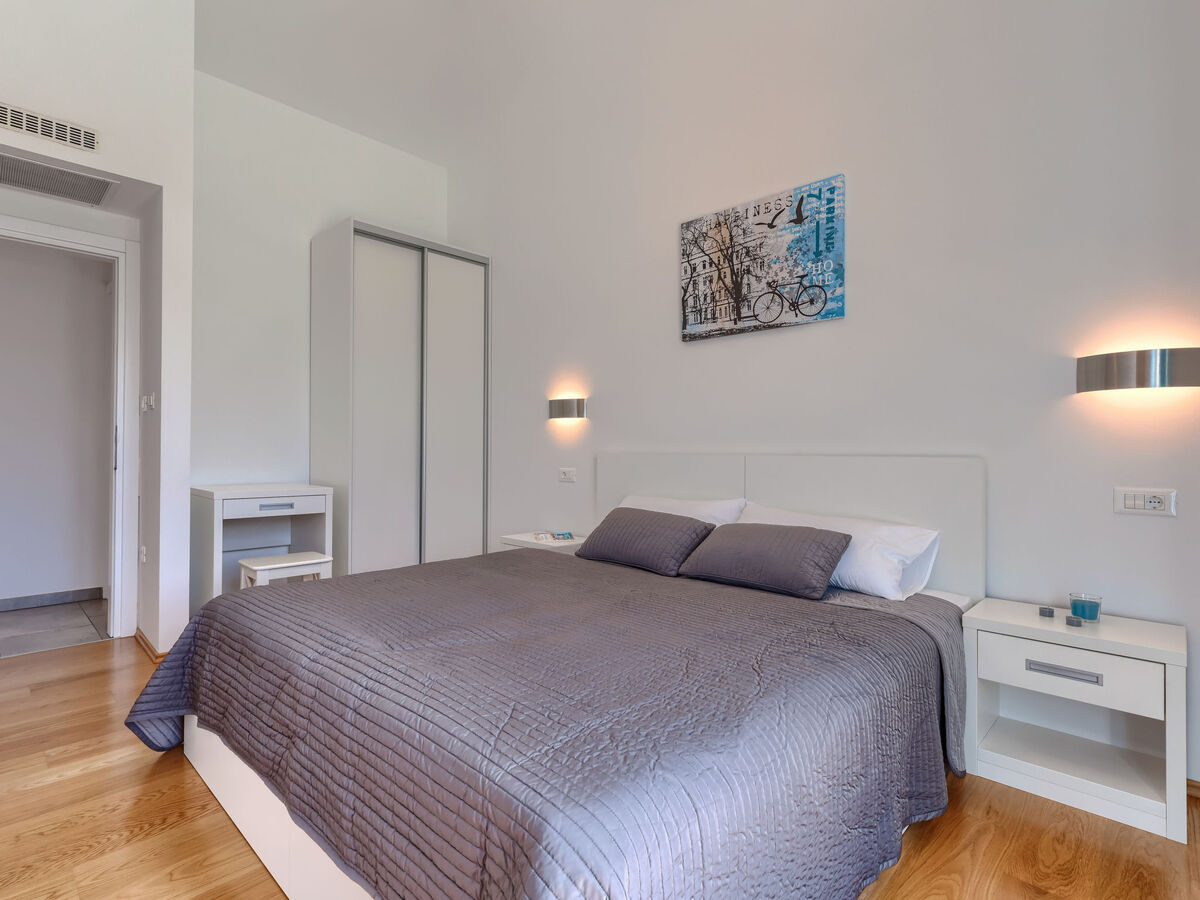 1 chambre avec 1 grand-lit (180 cm, longueur 200 cm), bain/bidet/WC et air-conditionné.