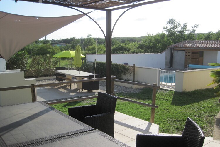 La maison a été construite en 2016 et est équipée de tout le confort, comme une piscine privée clôturée avec chaises longues et une terrasse couverte où vous pouvez profiter d'un verre du vin frais.
