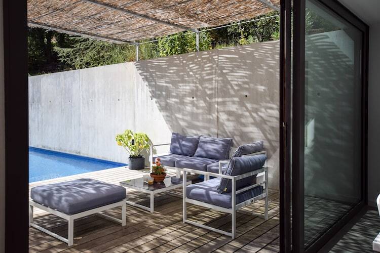 Rez-de-chaussée: (cuisine(plaque de cuisson(induction), four, lave-vaisselle , combinaison réfrigérateur/congélateur), salle à manger-salon(table, cheminée décorative, installation stéréo), chambre(lit double(160 x 200 cm)), salle de bains(douche, lavabo, WC), remise(micro ondes, lave-linge ), barbecue, tennis de table/ping-pong) Au 1er étage: chambre(lit simple), chambre(lit simple), chambre en enfilade(lit double(140 x 200 cm)), salle de bains(baignoire-douche, lavabo, WC), TV, cafetière/percolateur, lit parapluie, baignoire où douche, chauffage, terrasse, mobilier de jardin, chaises longues, parasol, piscine(privé, 12 x 4 m.), table à repasser, jeux de société