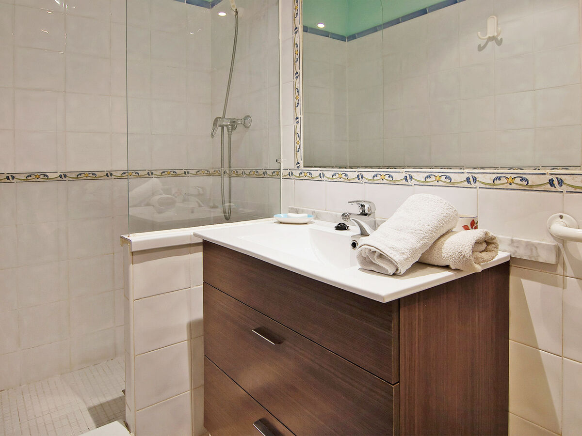 1 chambre avec 1 grand-lit (135 cm, longueur 190 cm), douche/bidet/WC, air-conditionné et chauffage à air chaud.