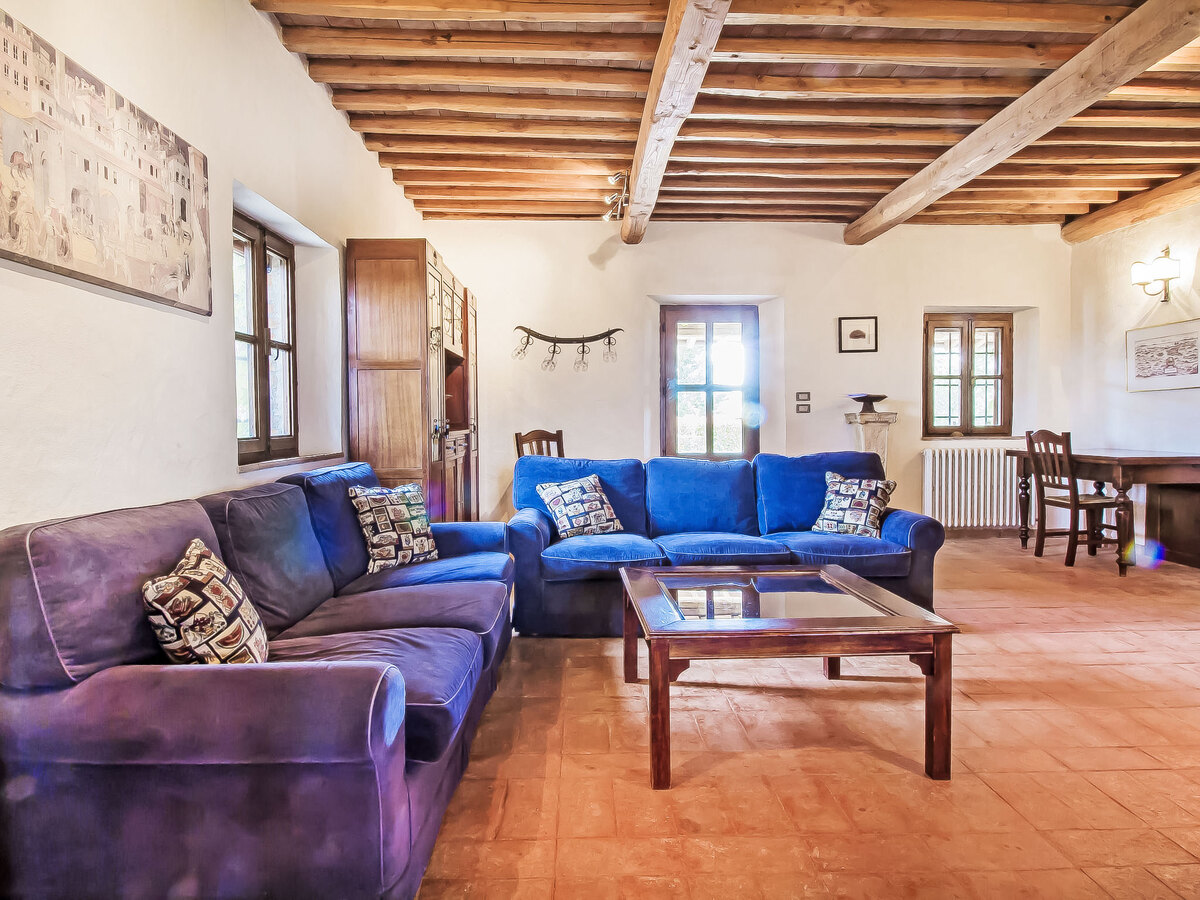 Aménagement rustique et de bon goût: grand séjour avec TV (satellite).