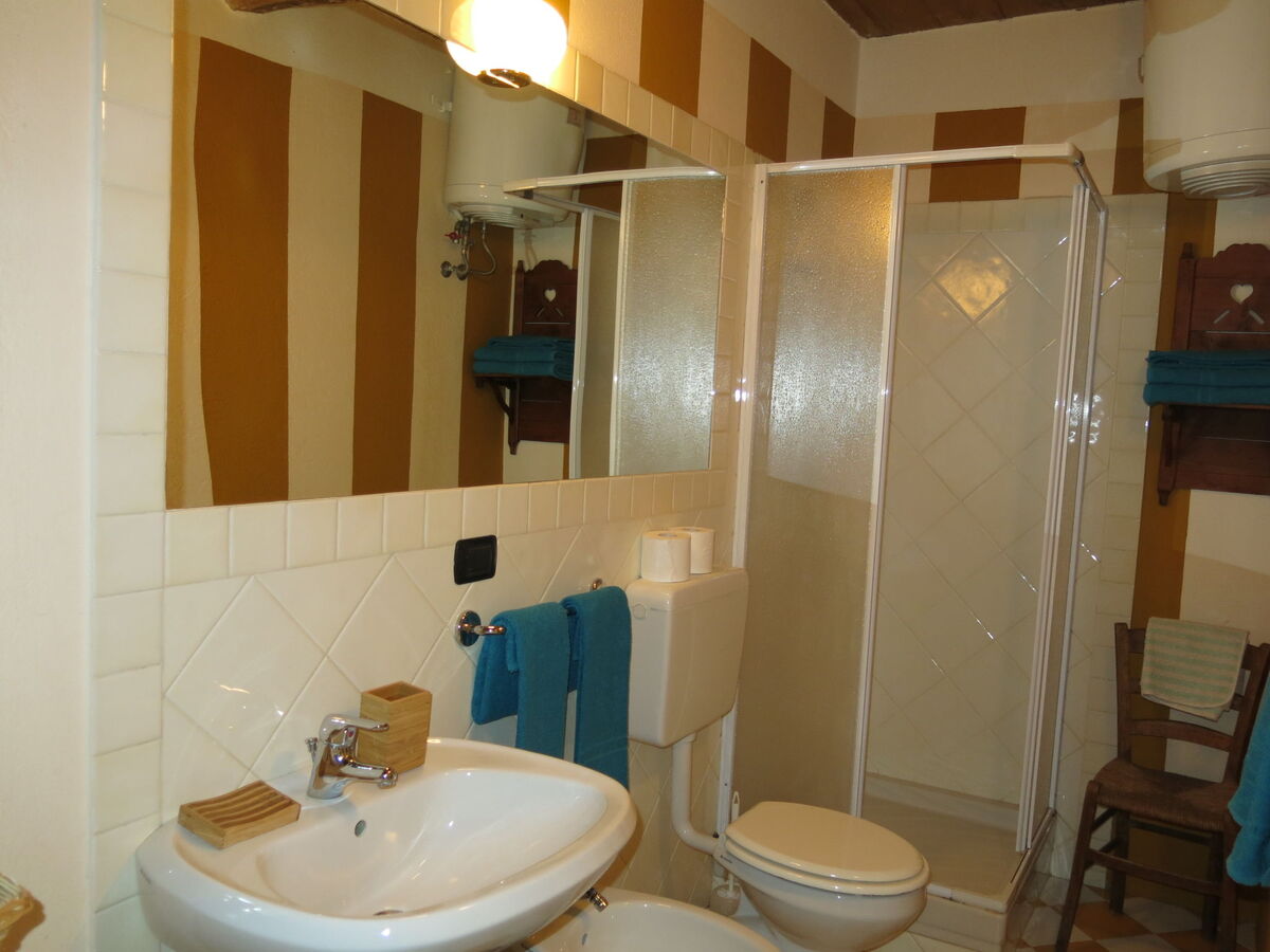 À l'étage supérieur: 1 chambre avec 1 x 2 lits superposés, 1 grand-lit (160 cm), douche/WC.