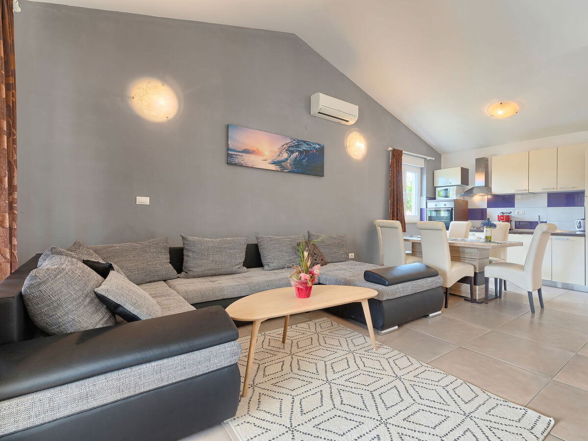 Séjour/salle à manger avec 1 divan-lit double et TV (satellite) (écran plat), air-conditionné.