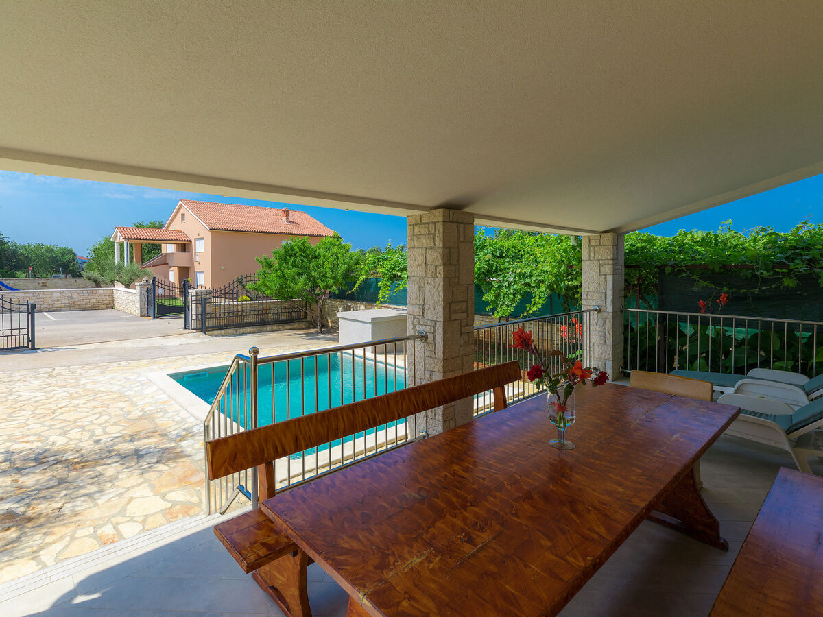 A usage privé: terrain 500 m2 (clôturé), pelouse et plantes, piscine (5 x 4 m, profondeur 140 cm, disponibilité saisonnière: 15.Avr.