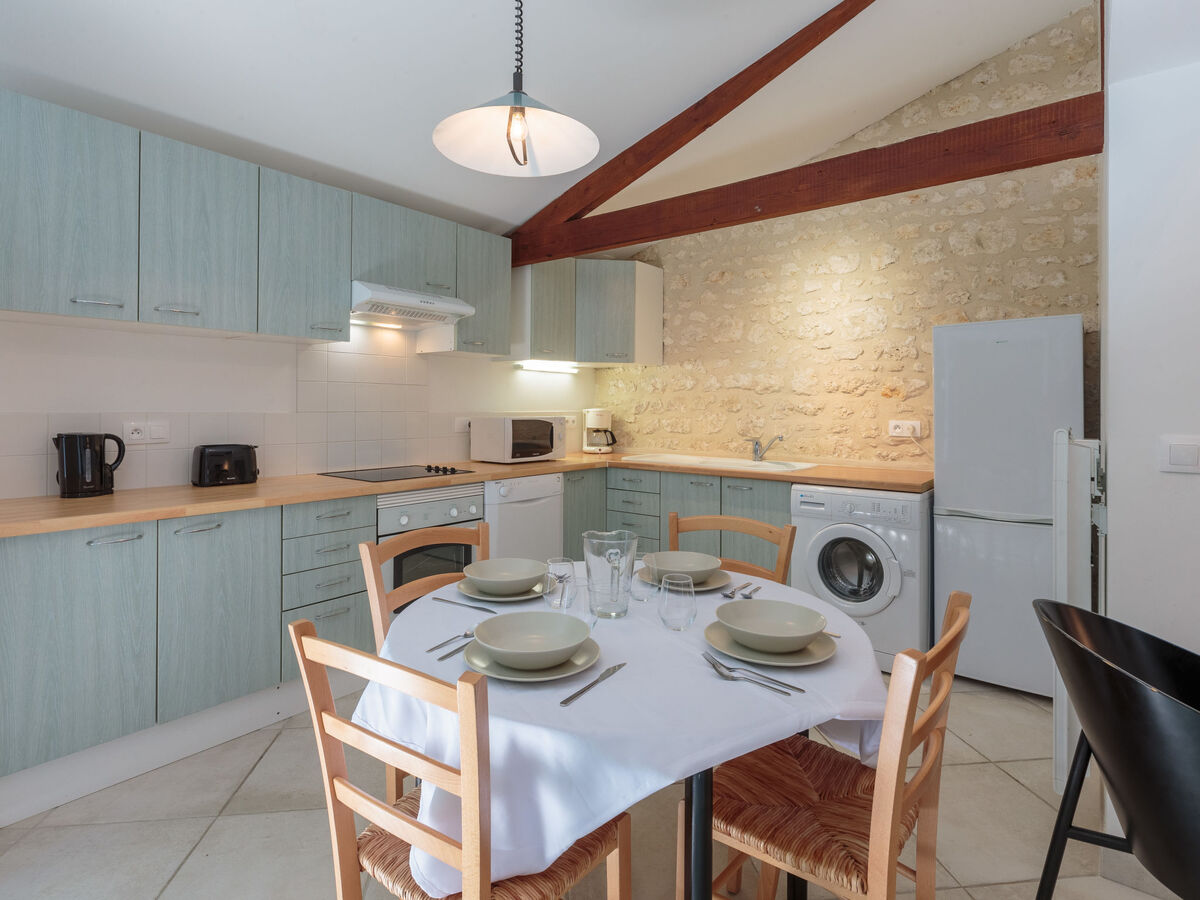 Cuisine ouverte (4 plaques de cuisson, four, lave-vaisselle, micro-ondes, congélateur).