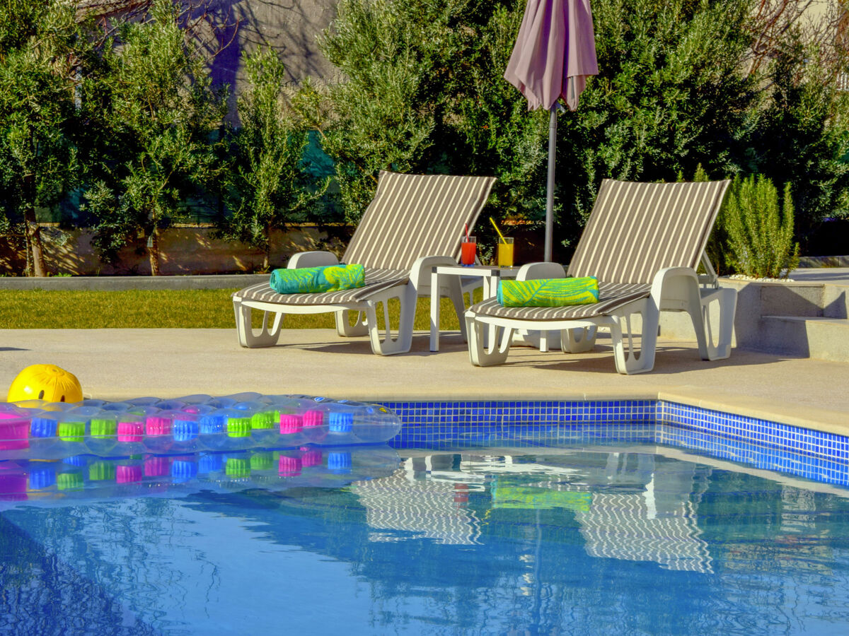 A usage privé: terrain 2'500 m2 (clôturé), pelouse, piscine rectangulaire (8 x 4 m, profondeur 150 cm, disponibilité saisonnière: 01.Mai.