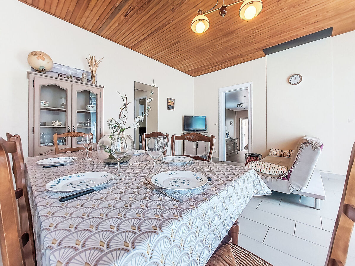Aménagement plaisant: séjour/salle à manger avec table pour les repas et TV (écran plat), radio et lecteur CD.