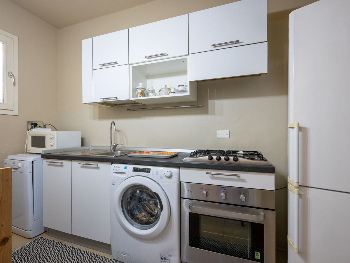 Petite cuisine (four, lave-vaisselle, 4 feux, grille-pain, bouilloire électrique, micro-ondes, congélateur, cafetière électrique).