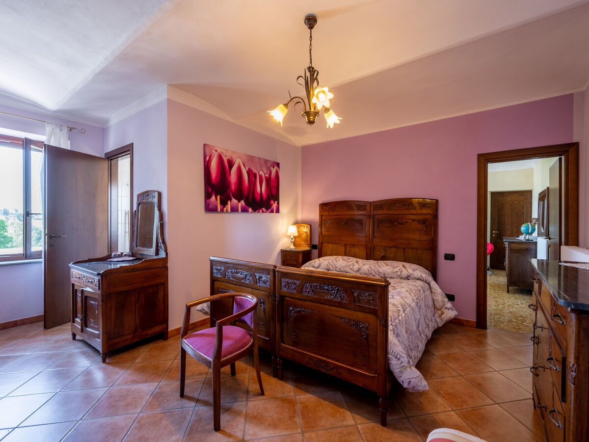 À l'étage supérieur: chambre avec passage avec 1 grand-lit (160 cm), douche/WC.