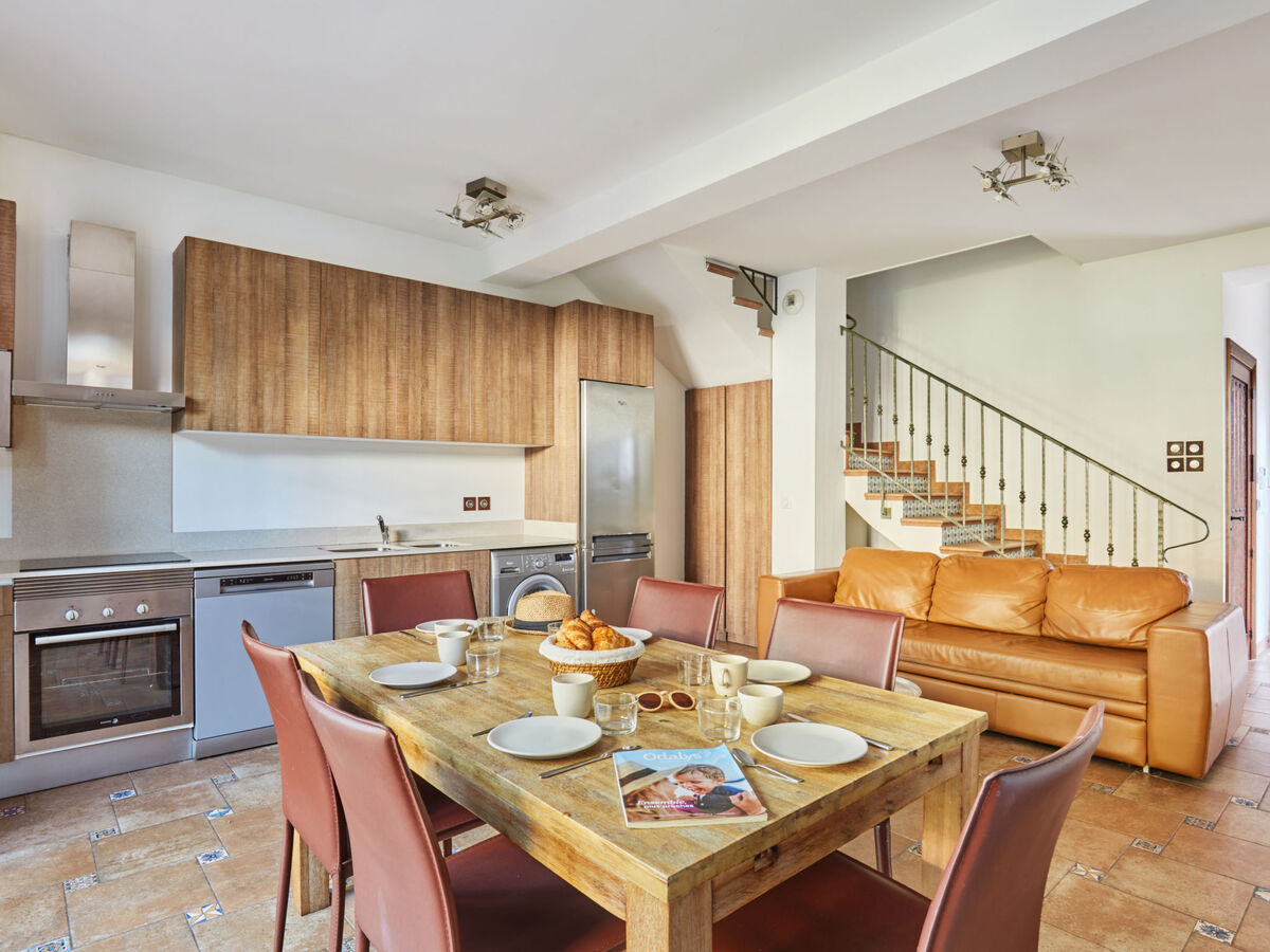 Cuisine ouverte (four, lave-vaisselle, 4 plaques vitrocéramiques, grille-pain, bouilloire électrique, micro-ondes, congélateur, cafetière électrique).