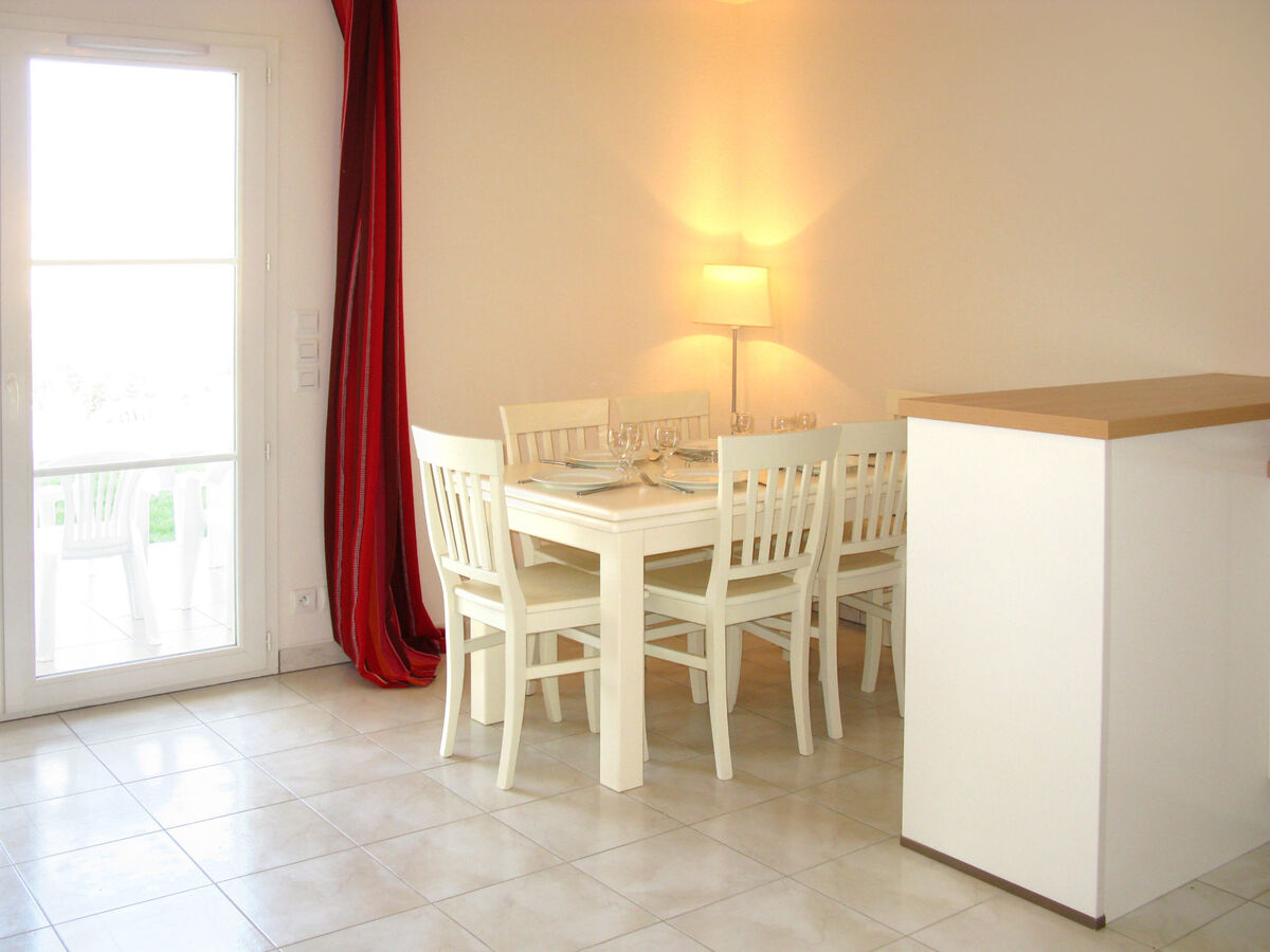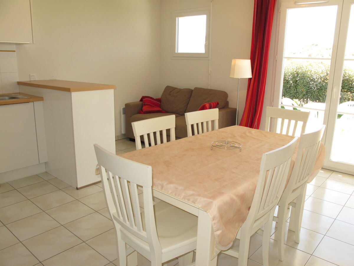 Clair, aménagement fonctionnel et plaisant: séjour/salle à manger avec table pour les repas et TV (écran plat).