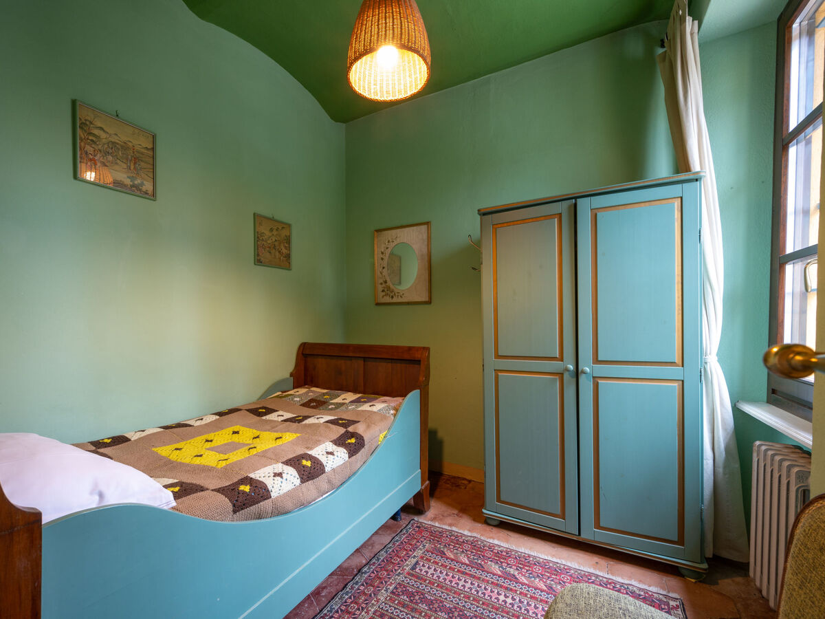 À l'étage supérieur: 1 chambre avec 1 grand-lit (170 cm), douche/WC et air-conditionné.