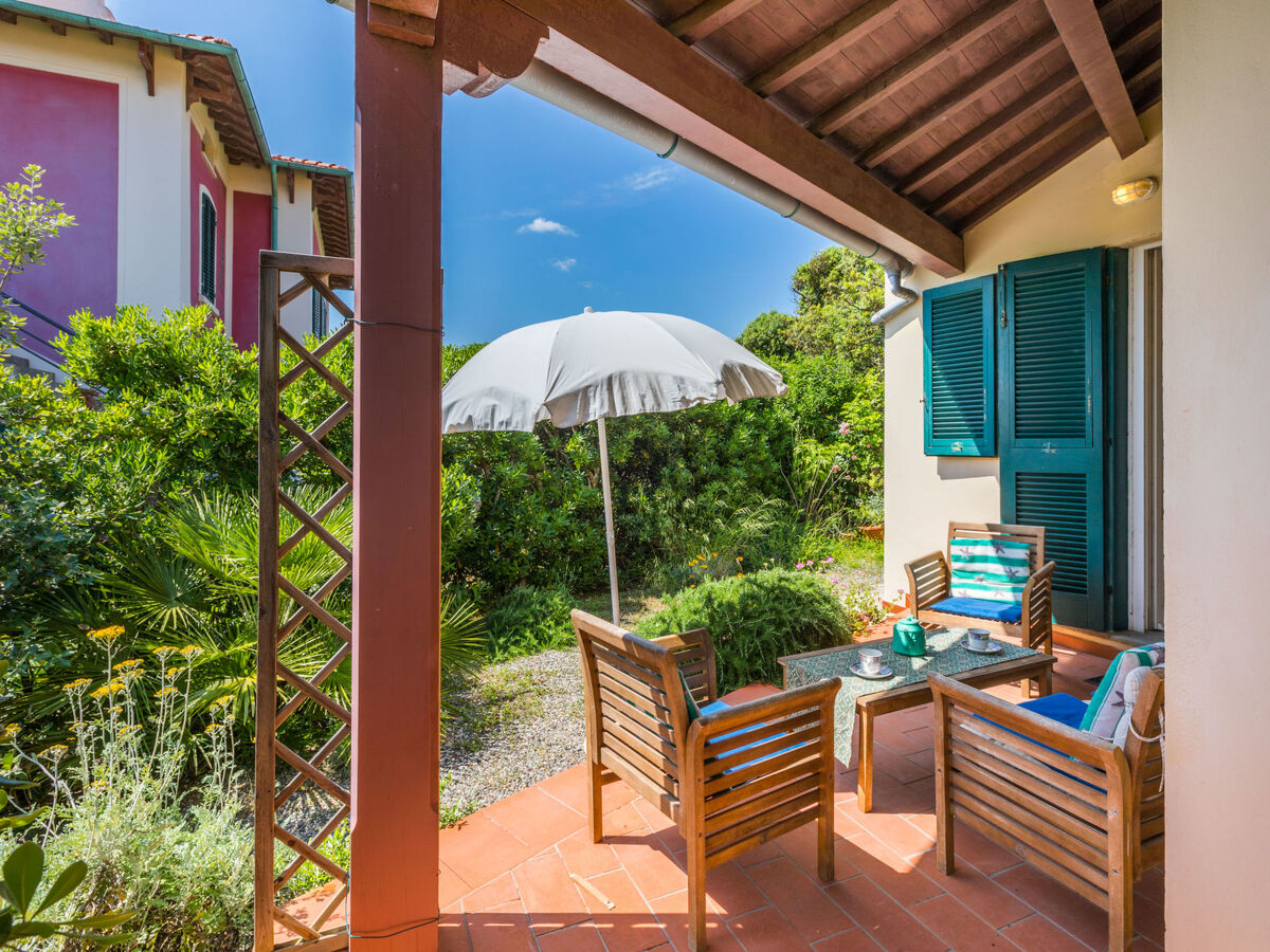 À 500 m du centre de Castiglioncello, à 20 km du centre de Cecina, à 23 km du centre de Livorno, quartier résidentiel, à 100 m de la mer, dans une impasse, dans la verdure.