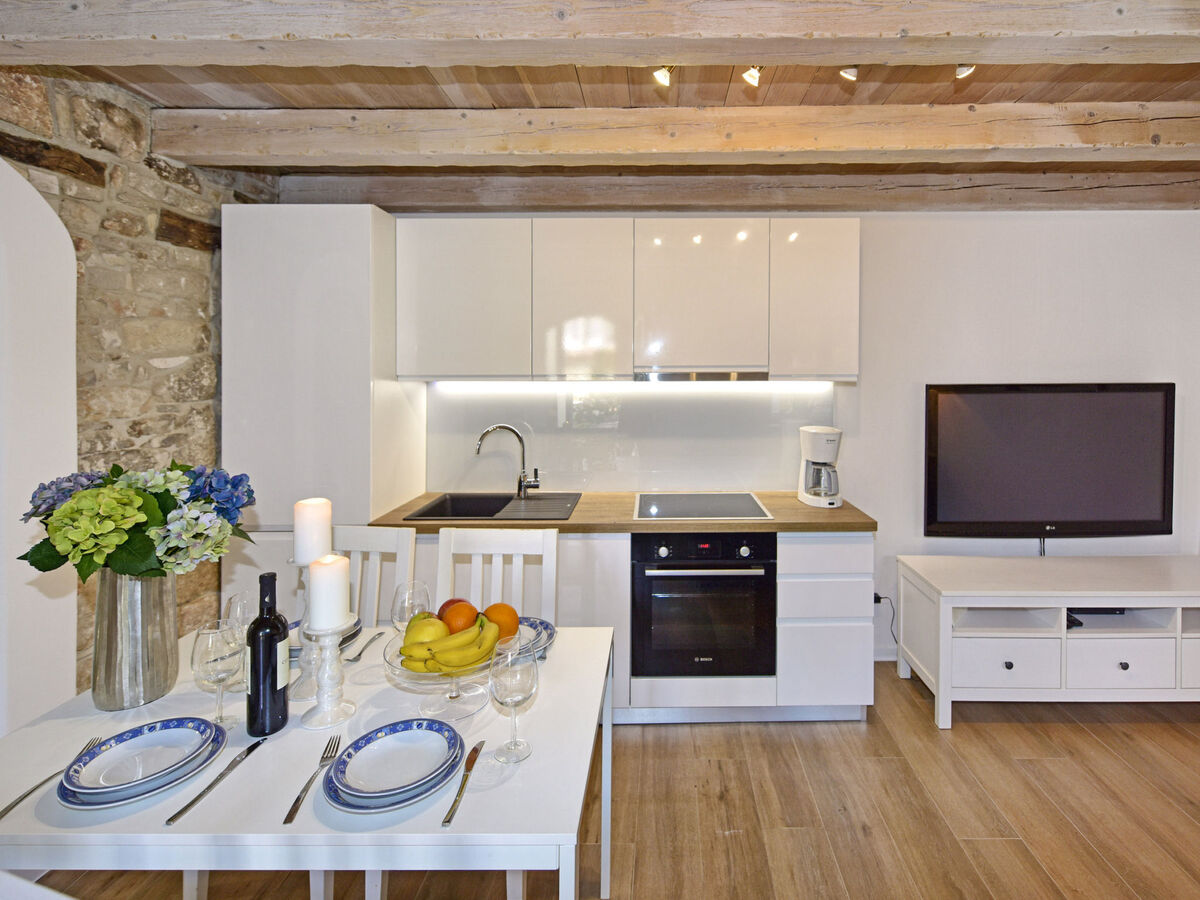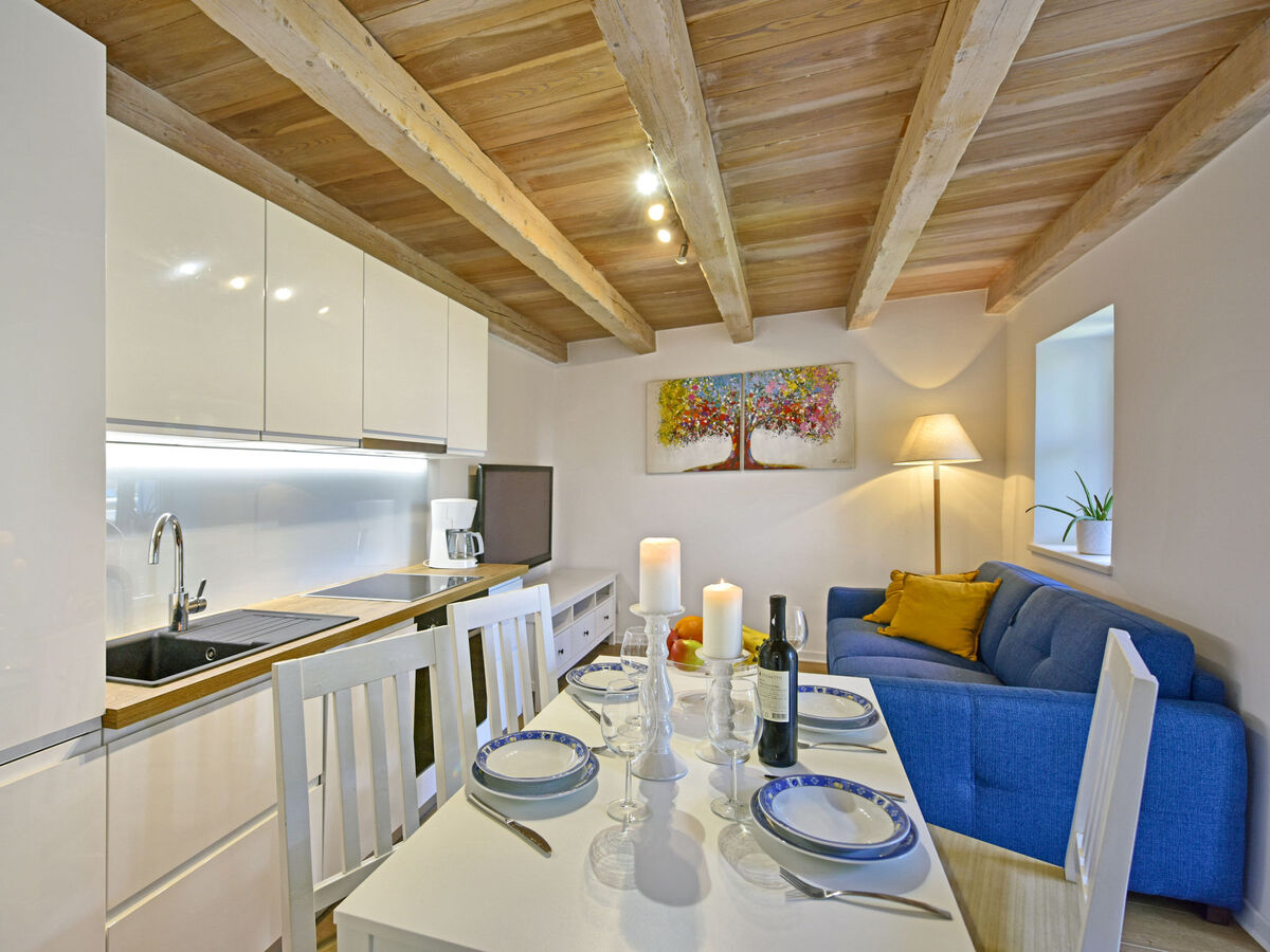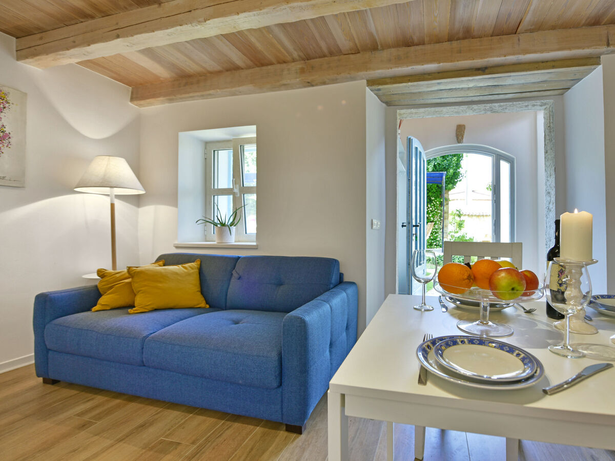 Complètement rénovée en 2021: séjour/salle à manger avec 1 divan-lit double (160 cm, longueur 200 cm), TV (satellite) (écran plat), air-conditionné.