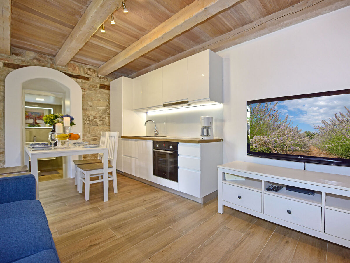 Dans le hameau de Labinci, à 13 km du centre de Poreč, à 800 m du centre de Kaštelir, à 12 km du centre de Novigrad, à 7 km de la mer, dans la verdure.