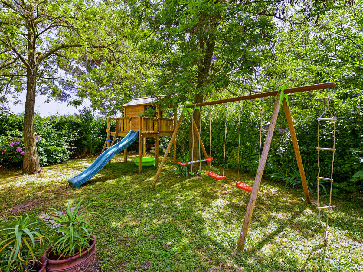 Douche extérieure, ping-pong, terrasse, meubles de jardin, espace de jeux pour les enfants (toboggan, balançoire, bac à sable), entretien de la piscine par le propriétaire/jardinier.