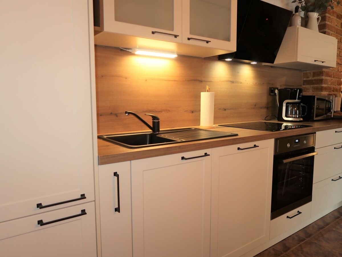 Cuisine ouverte (four, lave-vaisselle, 4 plaques vitrocéramiques, grille-pain, bouilloire électrique, micro-ondes, cafetière électrique).