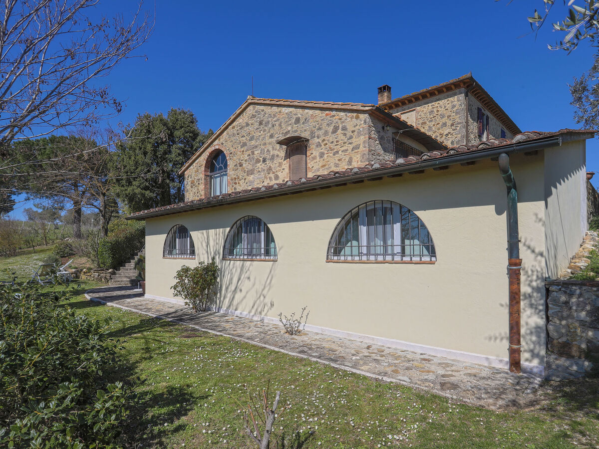Maison de campagne "Podere San Raffaele", environnée par les arbres, champs et vignobles.