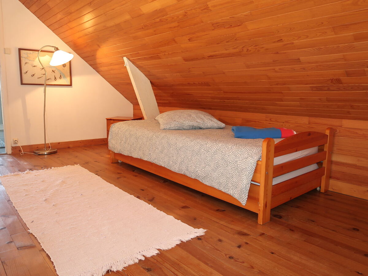 À l'étage supérieur: galerie mansardée, ouverte avec 1 lit et 1 lit gigogne.