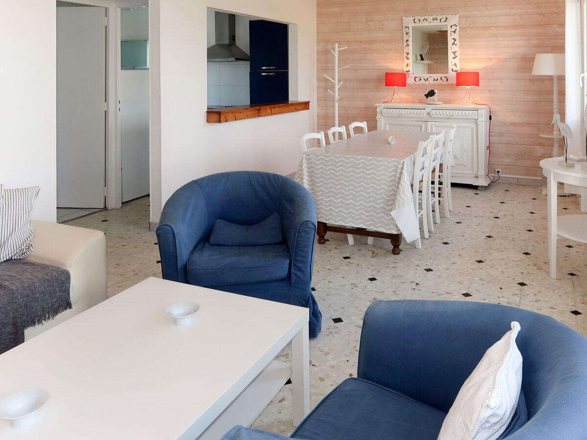 Aménagement fonctionnel et plaisant: séjour/salle à manger avec table pour les repas, TV (satellite) et chaînes de TV internationales.