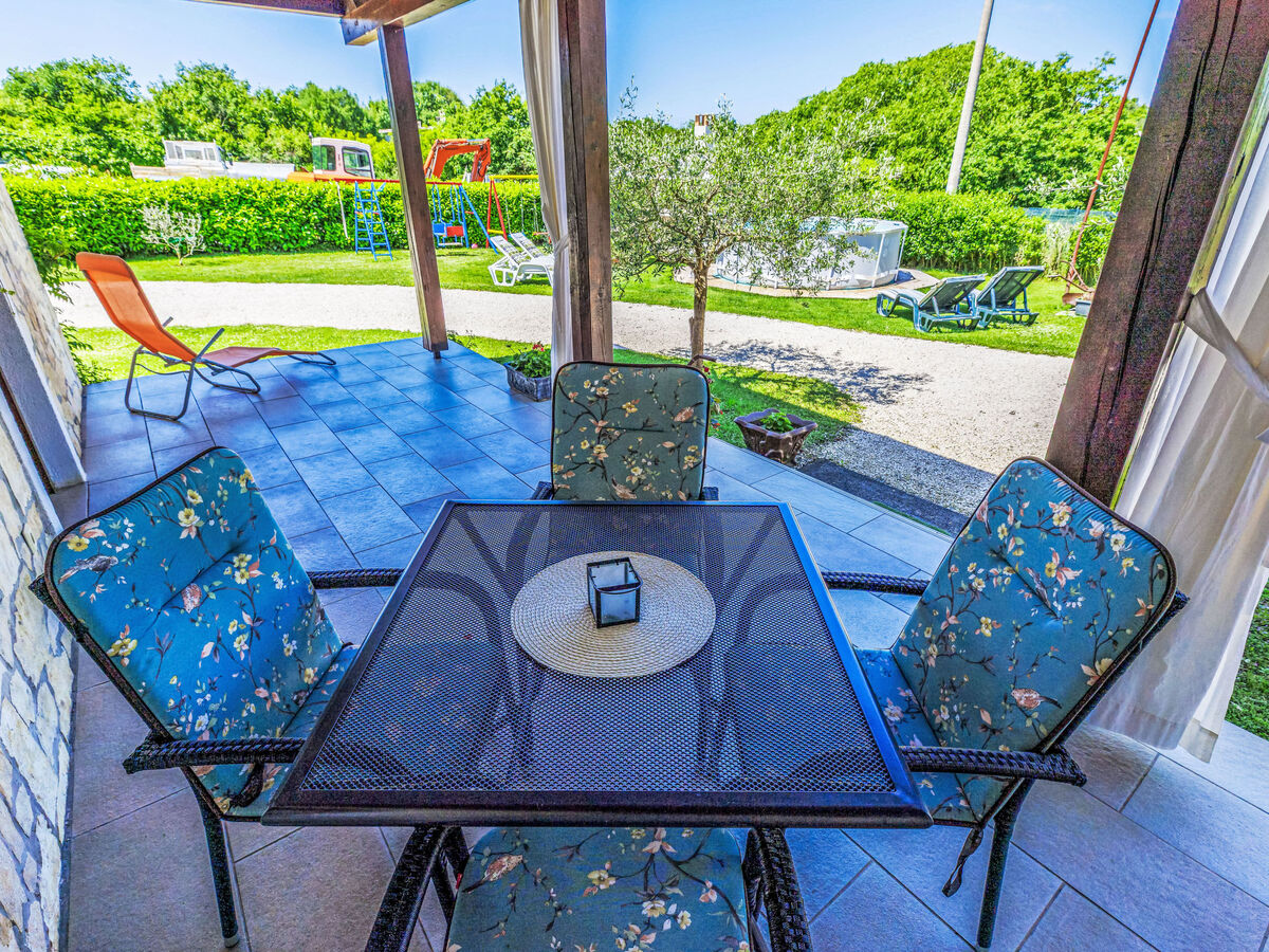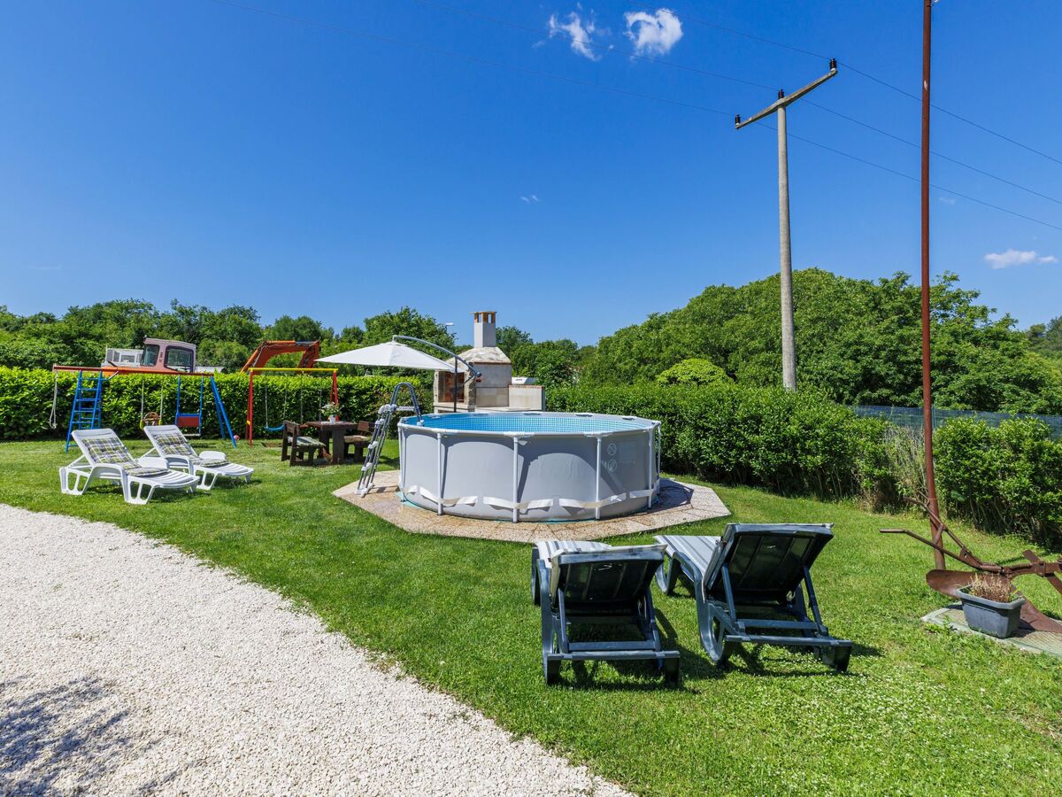 En commun: terrain 400 m2 avec pelouse et arbres, piscine ronde (3,5 m diamètre, profondeur 140 cm, disponibilité saisonnière: 01.Mai.