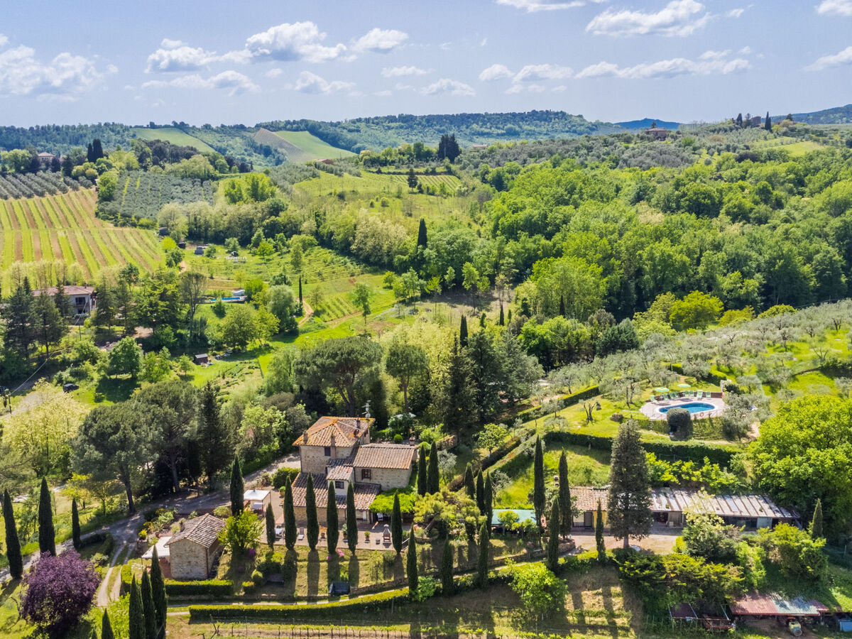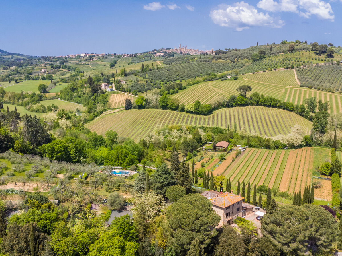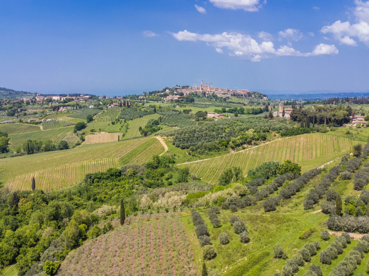 À 2.5 km du centre de San Gimignano, à 30 km du centre de Volterra, à 40 km du centre de Siena, situation ensoleillée sur un versant.