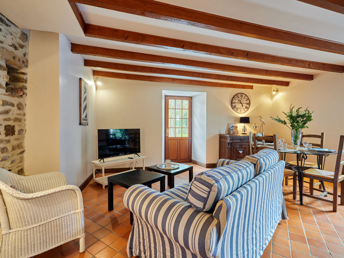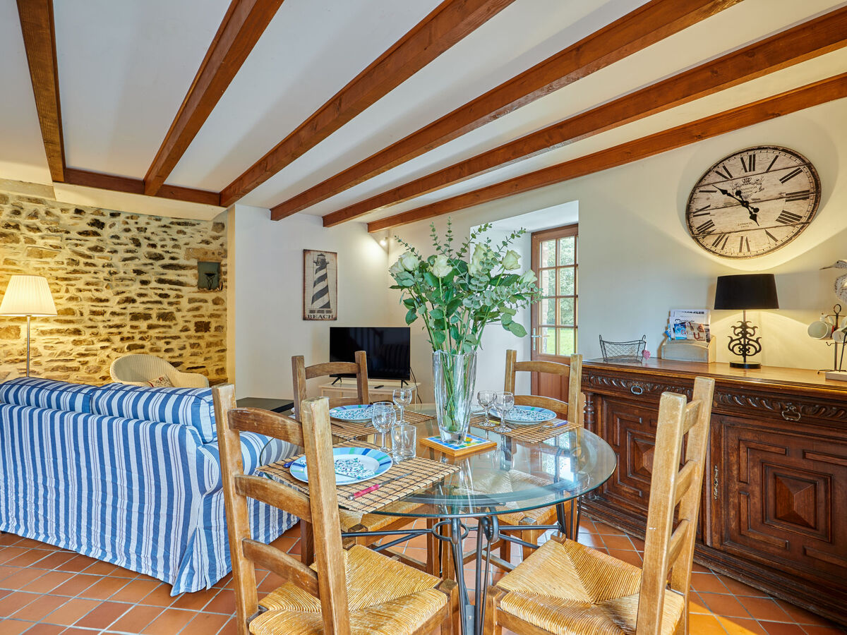 Aménagement fonctionnel: séjour/salle à manger avec table pour les repas et TV (satellite).