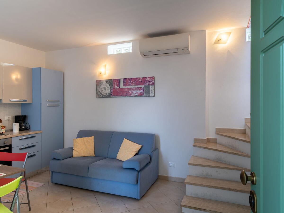 Aménagement moderne: séjour/chambre à coucher avec 1 divan-lit double (140 cm), TV (satellite).