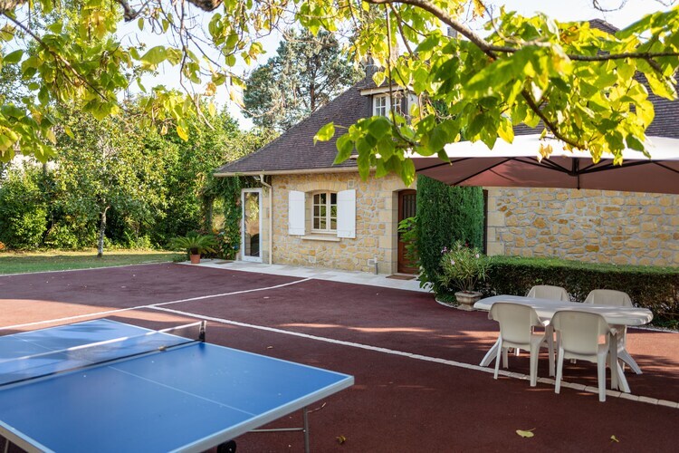 Rez-de-chaussée: (Entrée, couloir, cuisine(plaque de cuisson(4 foyers, vitrocéramique, gaz), cafetière/percolateur(filtre), four, micro ondes, lave-vaisselle ), salle à manger-salon(TV(écran plat), table(8 personnes), cheminée), chambre(Lit superposé), chambre(lit double(140 x 190 cm)), salle de bains(baignoire, douche, lavabo), WC, réserve(combinaison réfrigérateur/congélateur, sèche-linge, lave-linge ), serre(table(6 personnes)), portes-fenêtres) Au 1er étage: (chambre(lit double(160 x 200 cm)), chambre(2x lit simple), salle de bains(douche, lavabo, bidet), 2x WC) chauffage(central), terrasse(privé), jardin(aménagé, > 1000 m2), mobilier de jardin(8 personnes), barbecue(charbon de bois), parking, chaises longues, parasol, terrain de pétanque, équipements de jeux, lit d'enfant, chaise haute