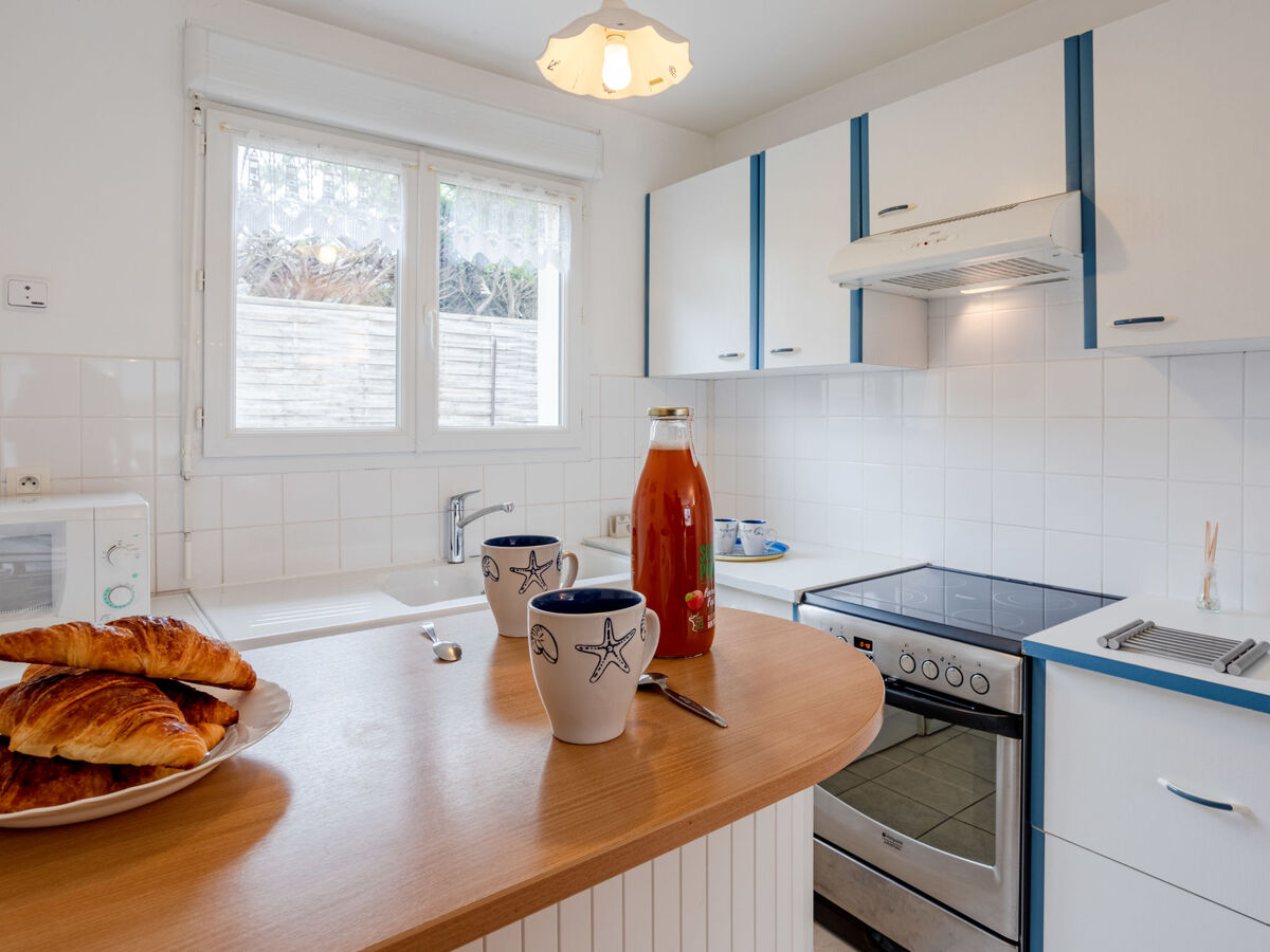 Cuisine ouverte (four, lave-vaisselle, 4 plaques vitrocéramiques, grille-pain, bouilloire électrique, micro-ondes, congélateur, cafetière électrique).