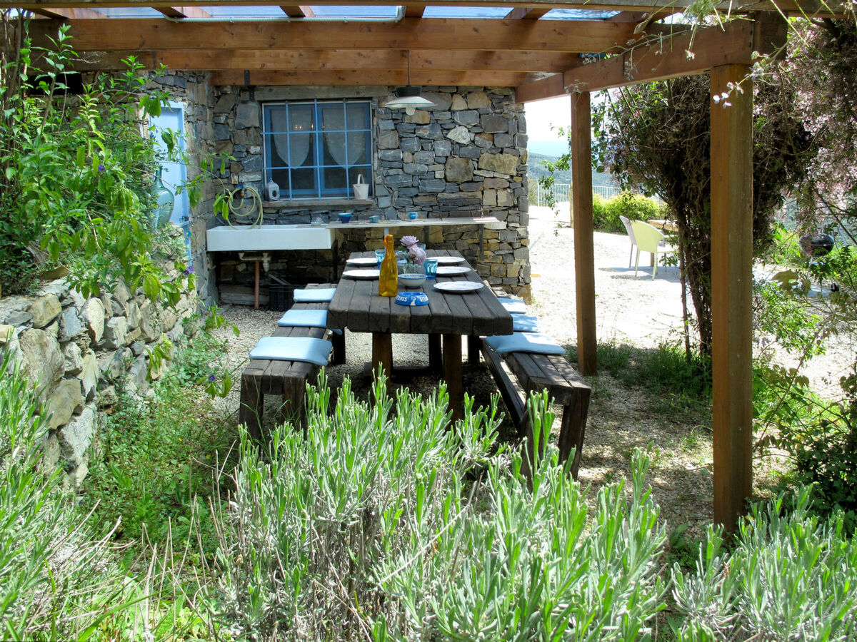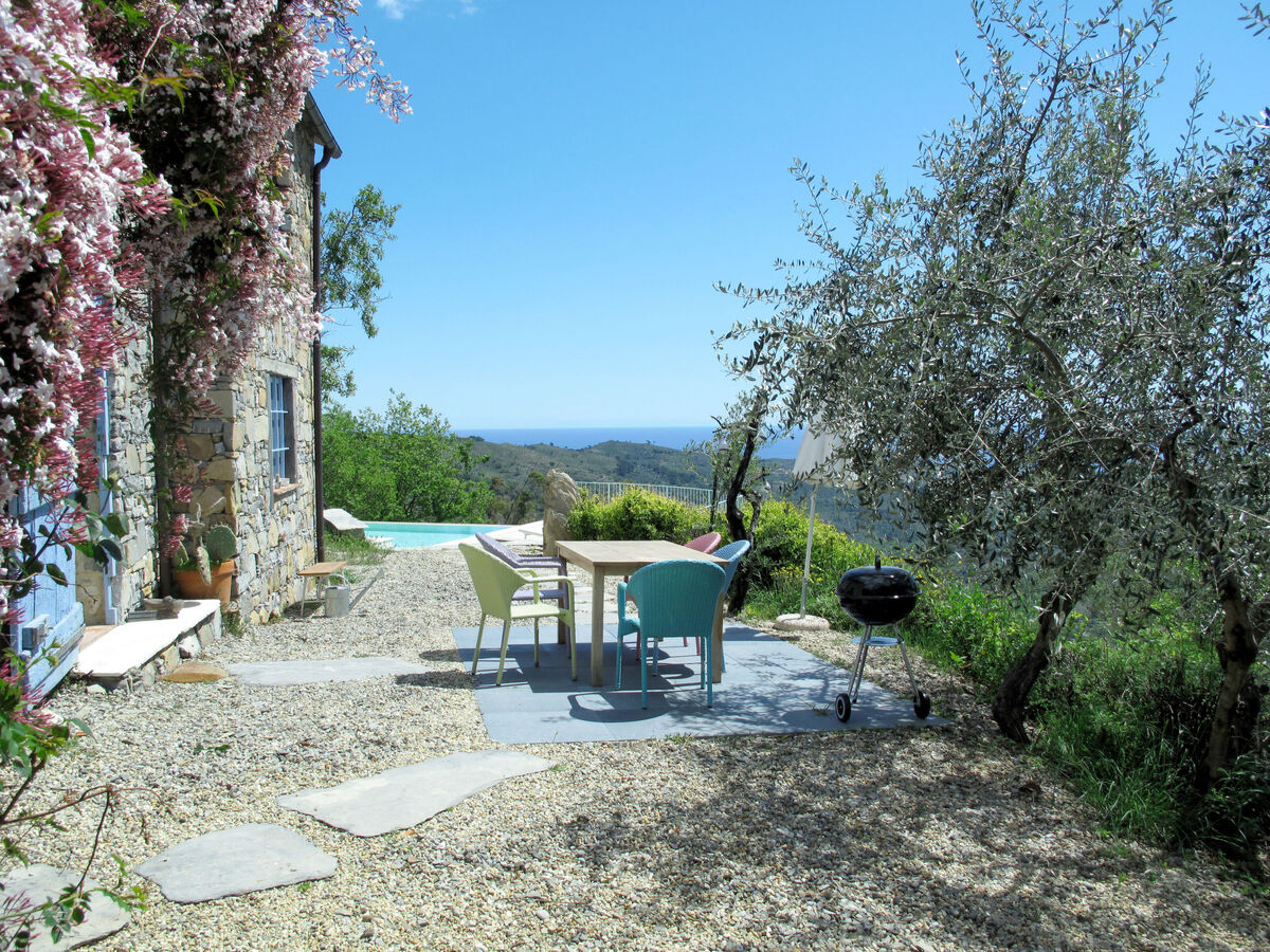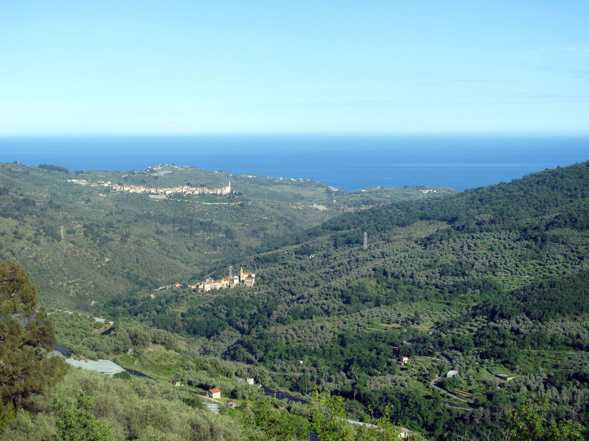 À 800 m du centre de Pietrabruna, à 10 km du centre de San Lorenzo al Mare, à 28 km du centre de San Remo, situation isolée, surélevée sur un versant, à 9.5 km de la mer, dans la verdure.