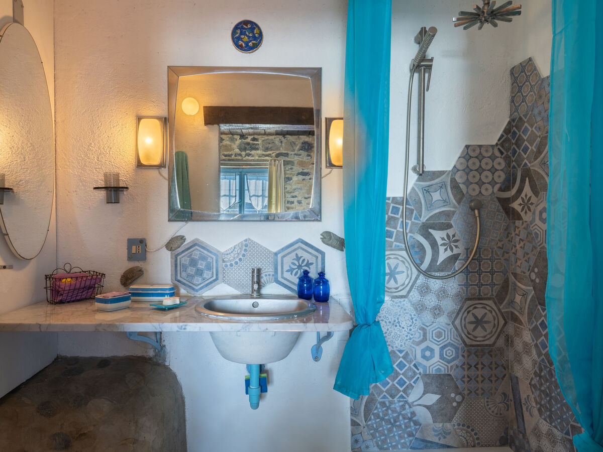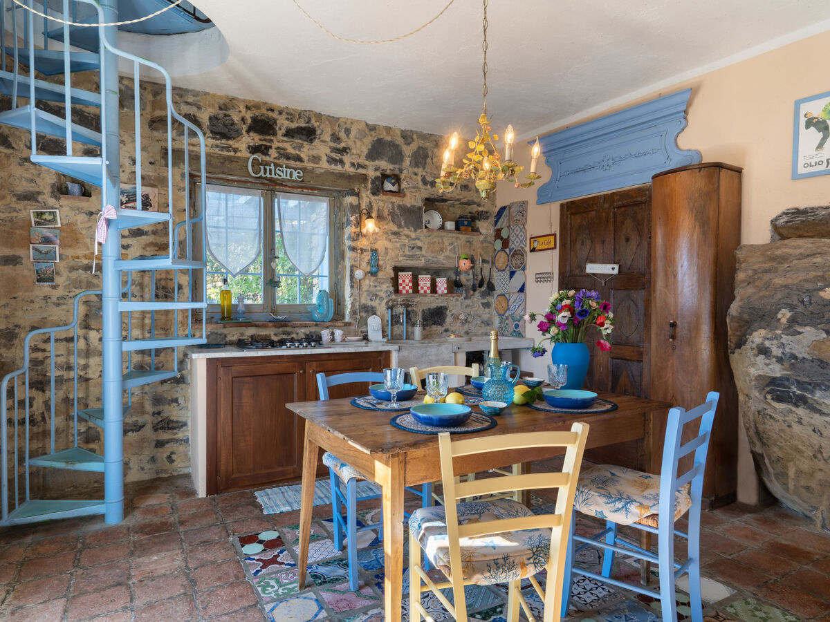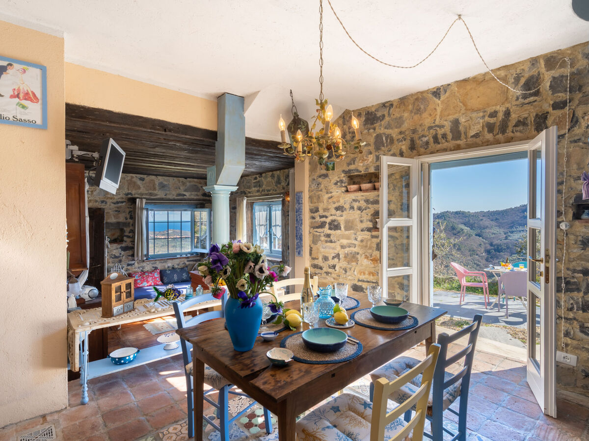 À 800 m du centre de Pietrabruna, à 10 km du centre de San Lorenzo al Mare, à 28 km du centre de San Remo, situation isolée, surélevée sur un versant, à 9.5 km de la mer, dans la verdure.