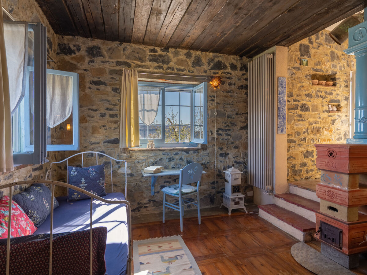 À l'étage supérieur: (escalier en colimaçon) 1 chambre, ouverte avec 1 lit double (160 cm).