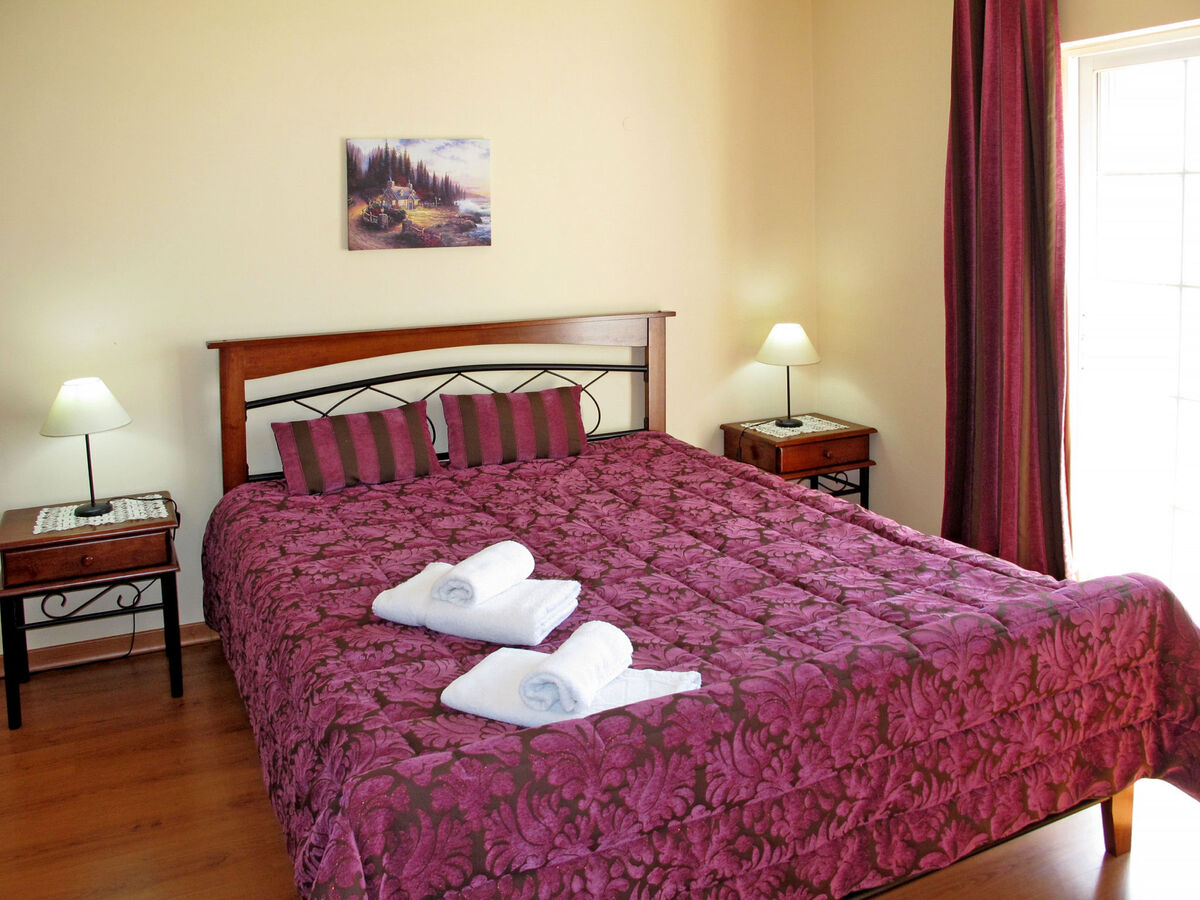1 chambre avec 1 grand-lit (150 cm), bain/WC et double vasque.