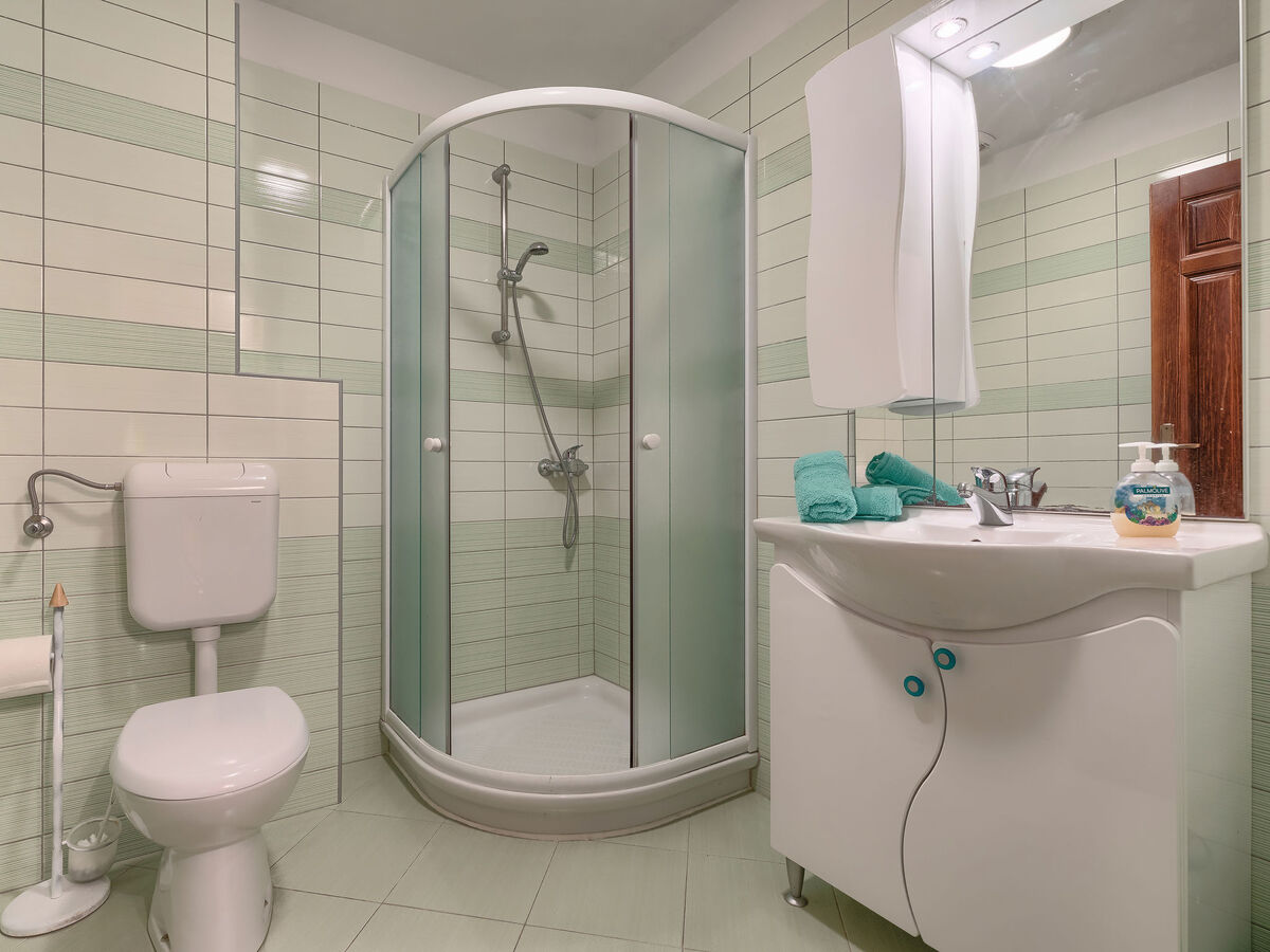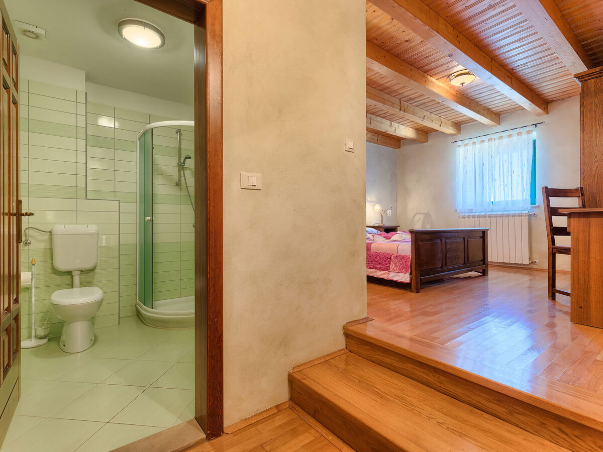 2ème étage: 1 chambre avec 1 grand-lit (160 cm), douche/WC et air-conditionné.