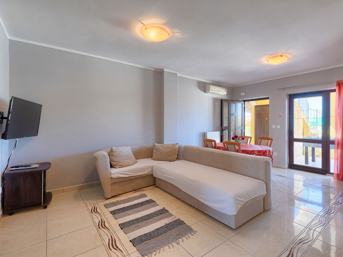Séjour/salle à manger avec coin-cuisine et air-conditionné.