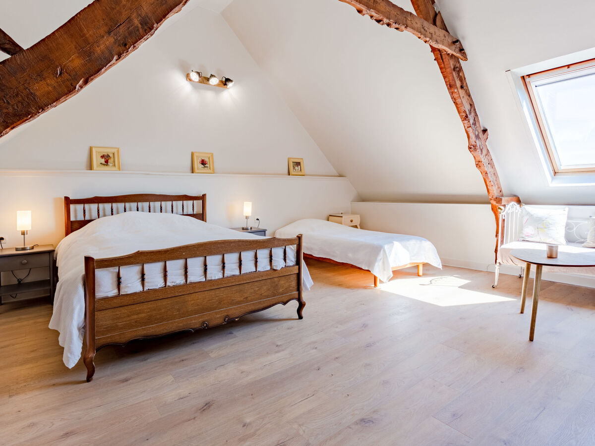 À l'étage supérieur: chambre avec passage mansardée avec 2 lits.