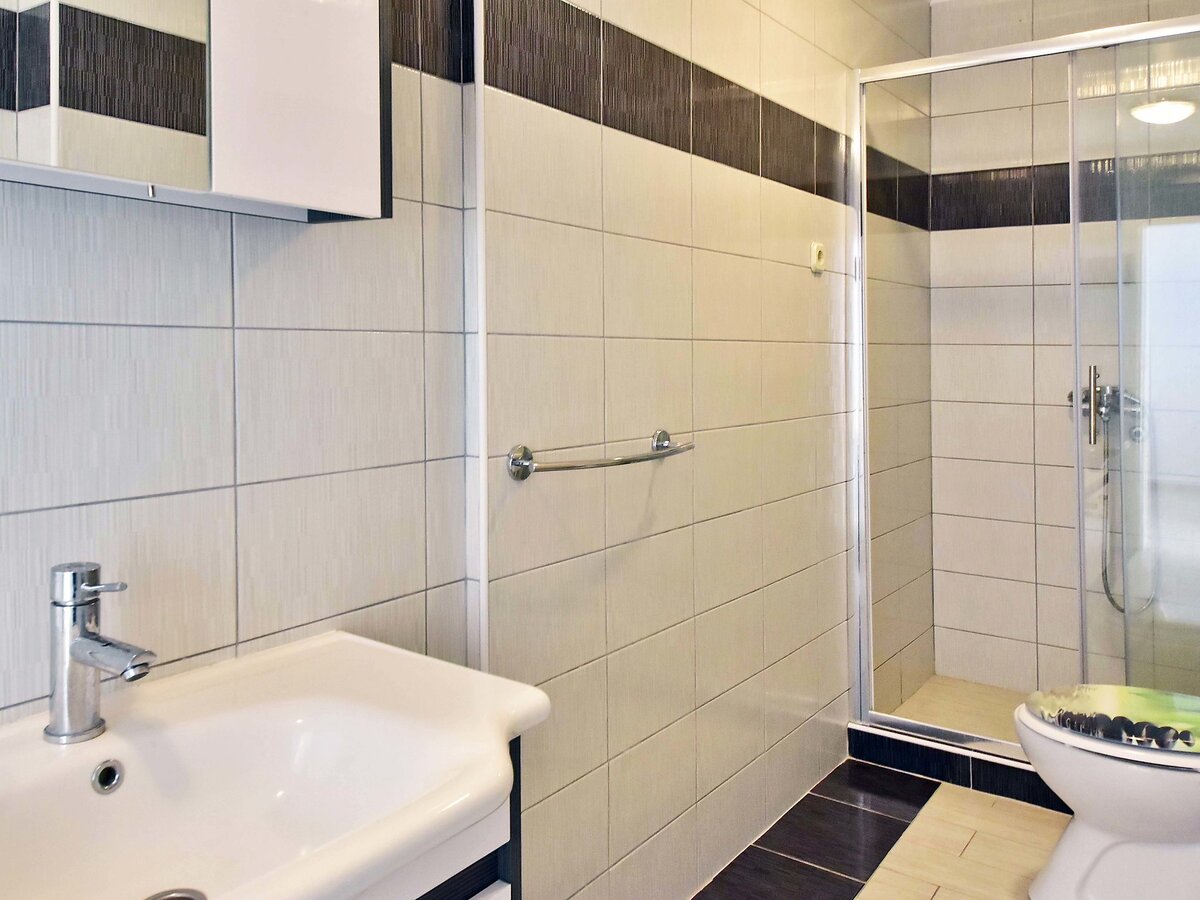 1 chambre avec 1 grand-lit (160 cm, longueur 200 cm), douche/WC.