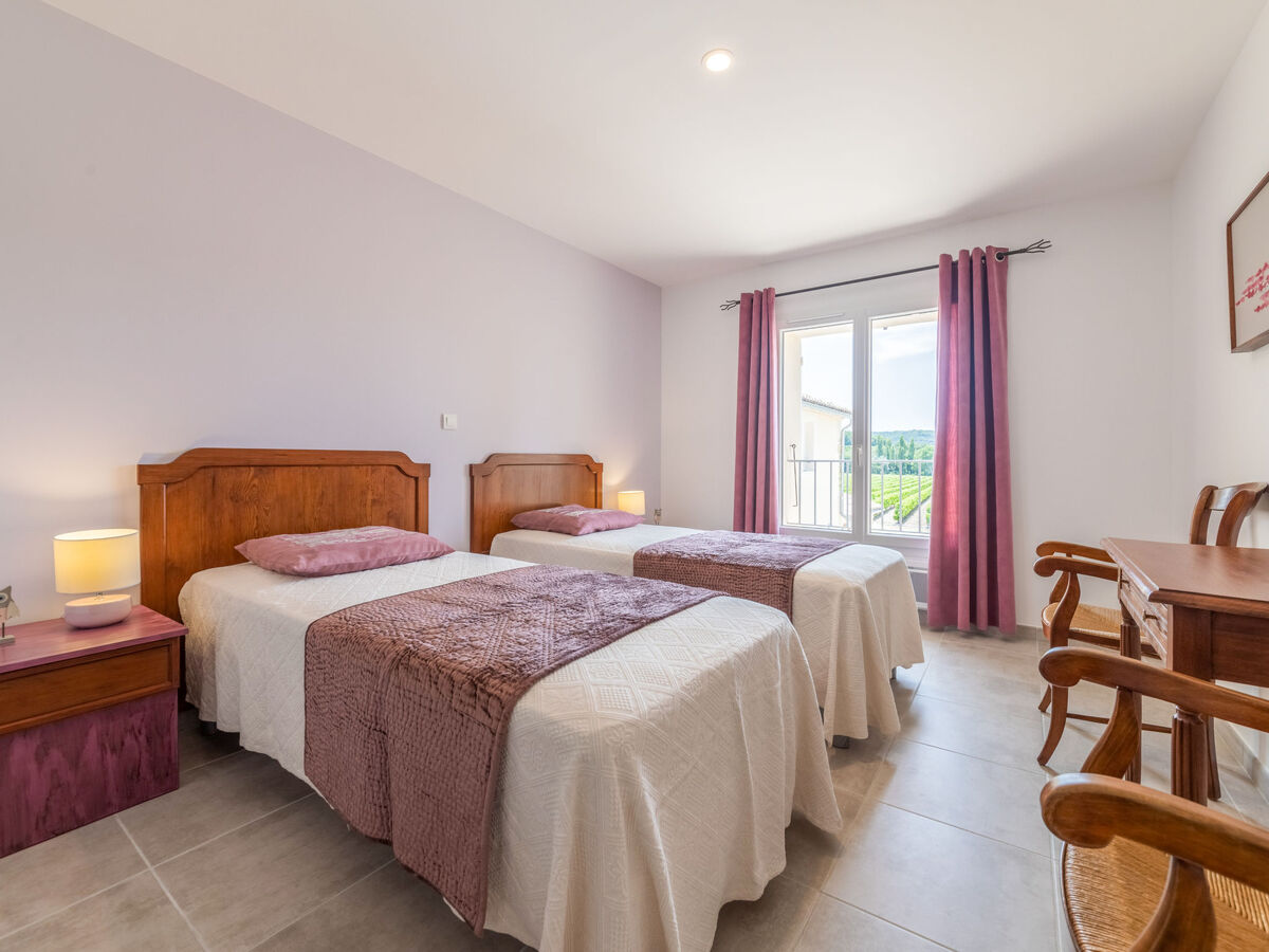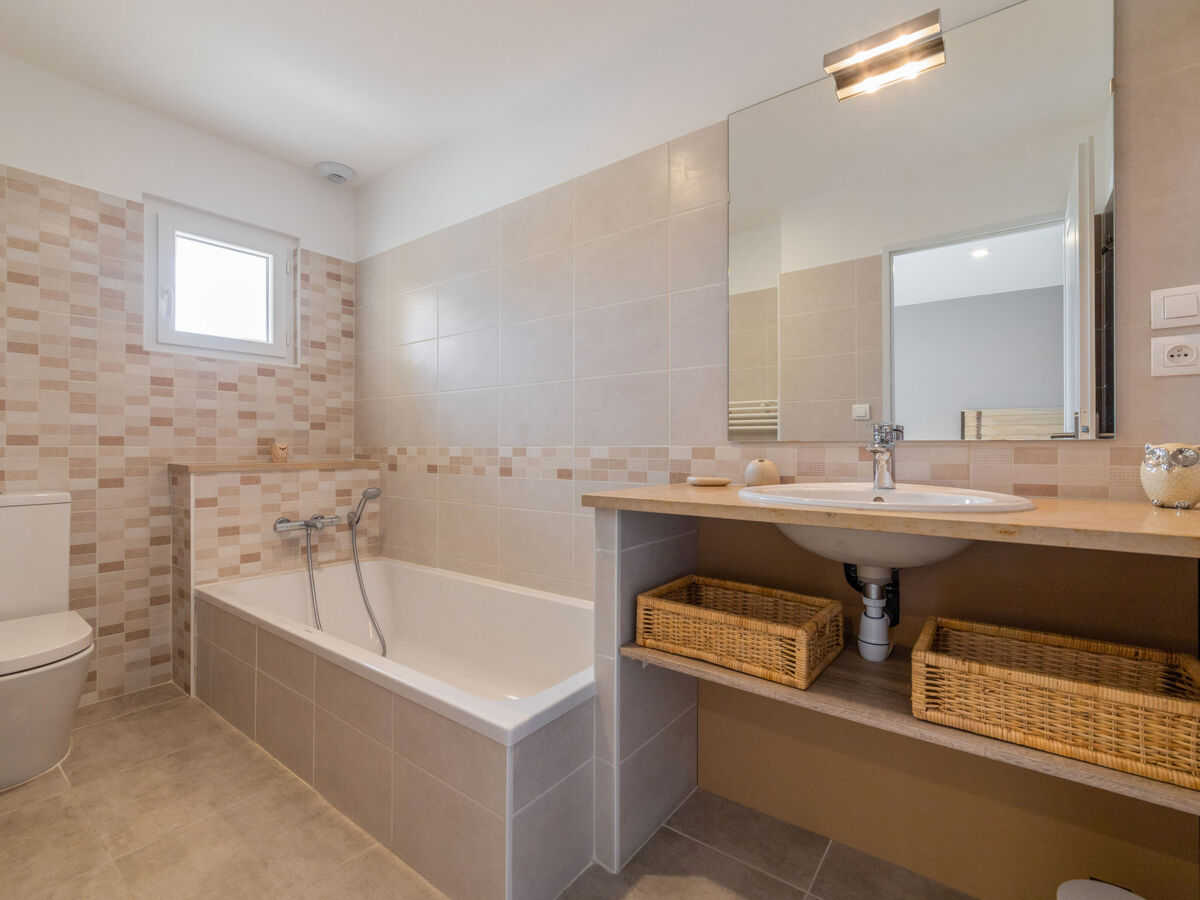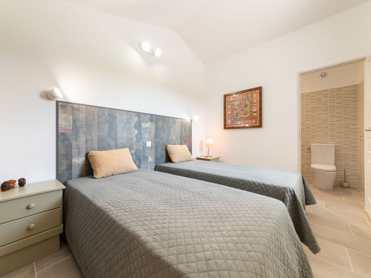 1 chambre avec 2 lits (90 cm, longueur 190 cm), douche/WC et double vasque.