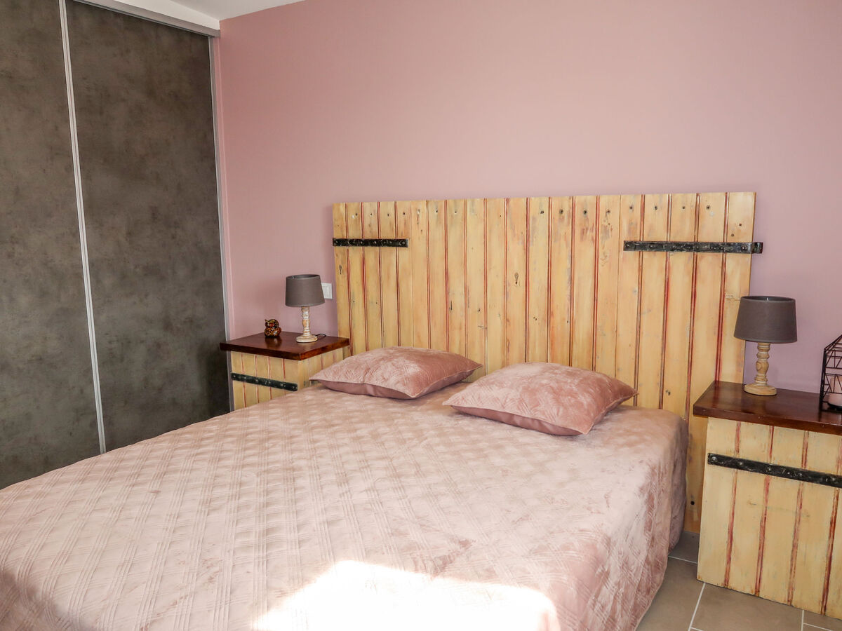 1 chambre avec 1 grand-lit (160 cm, longueur 200 cm), douche/WC.