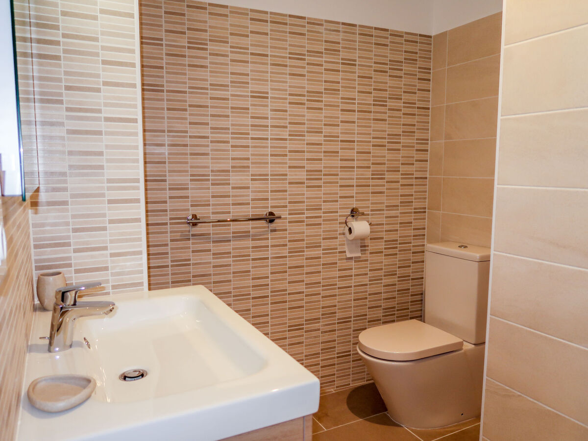 1 chambre avec 2 lits (90 cm, longueur 190 cm), douche/WC.