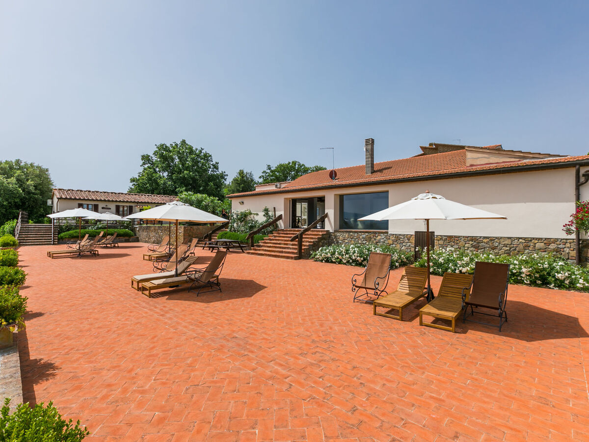 À 10 km du centre de Cinigiano, situation tranquille, surélevée, à 51 km de la mer, dans la verdure.