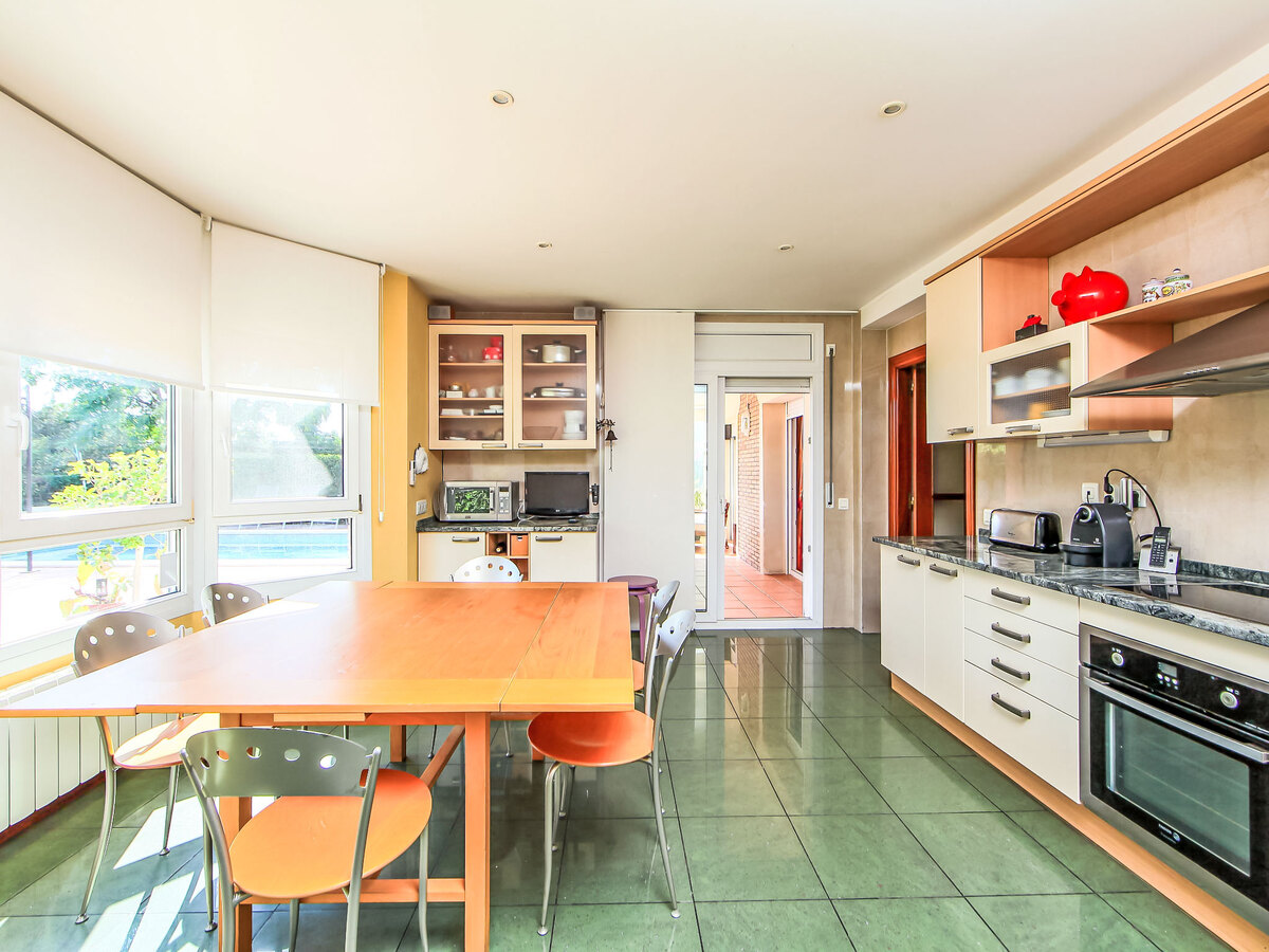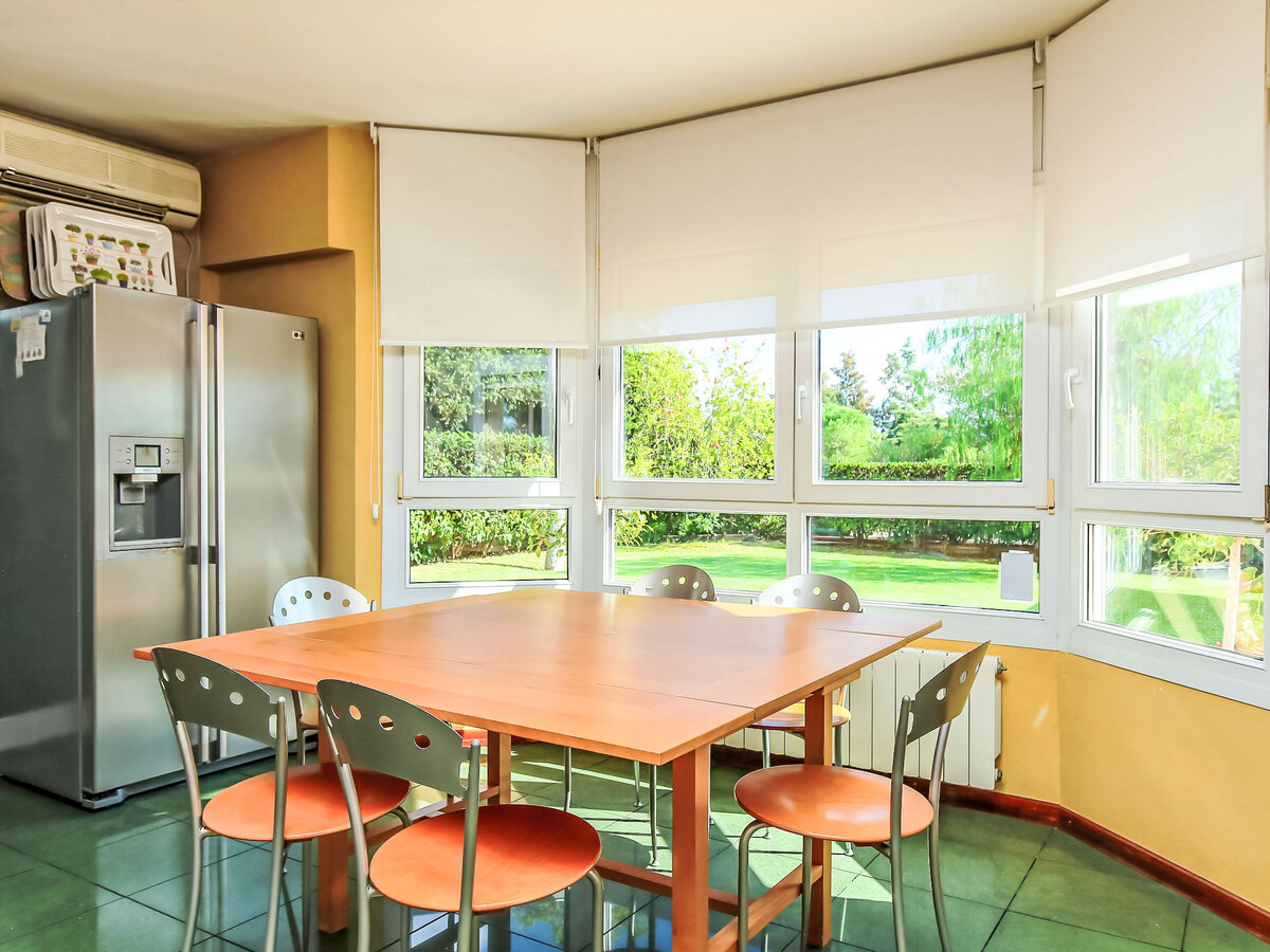 Grande cuisine 20 m2 (lave-vaisselle, 4 plaques à induction, grille-pain, bouilloire électrique, micro-ondes, congélateur, cafetière électrique, Capsules pour machine à café (Nespresso)) avec table pour les repas, air-conditionné et volet roulant électrique.
