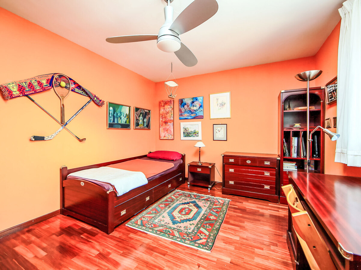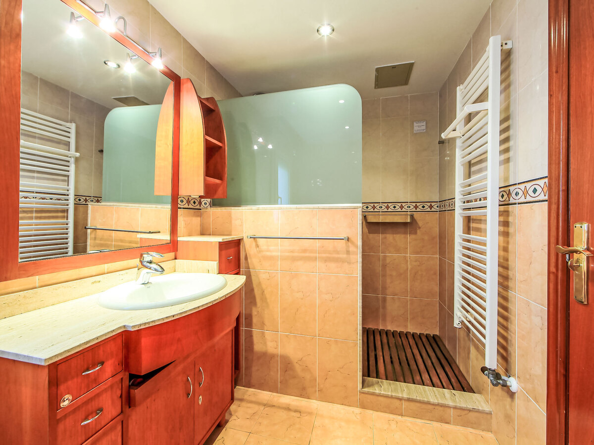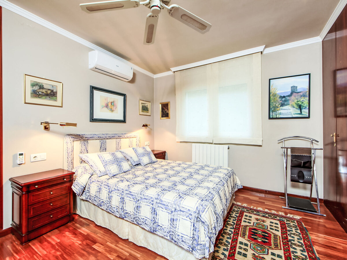 À l'étage supérieur: 1 chambre 20 m2 avec 1 grand-lit (140 cm, longueur 200 cm), bain/douche/WC et air-conditionné.
