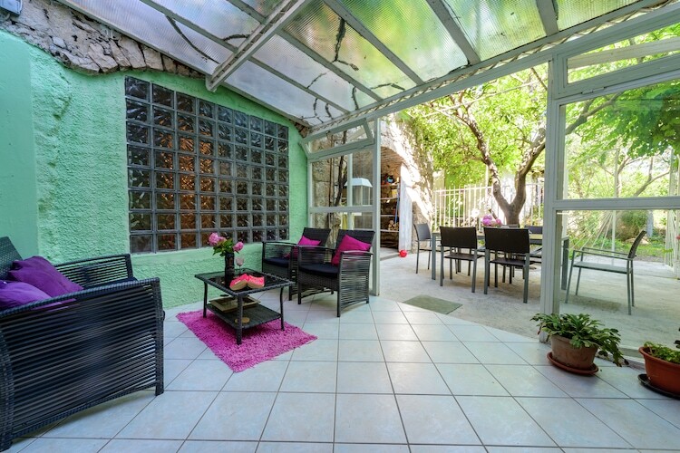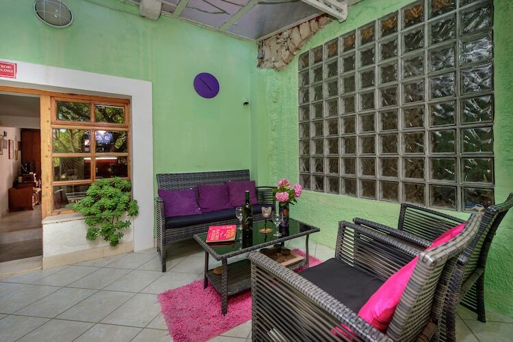 Entourée d'une végétation luxuriante et d'arbres fruitiers méditerranéens, cette charmante villa de vacances offre un havre de paix avec vue sur la mer depuis les chambres. Idéale pour les familles ou les amis, elle dispose d'une cuisine bien équipée donnant sur une terrasse couverte avec barbecue, idéale pour des repas en plein air décontractés.