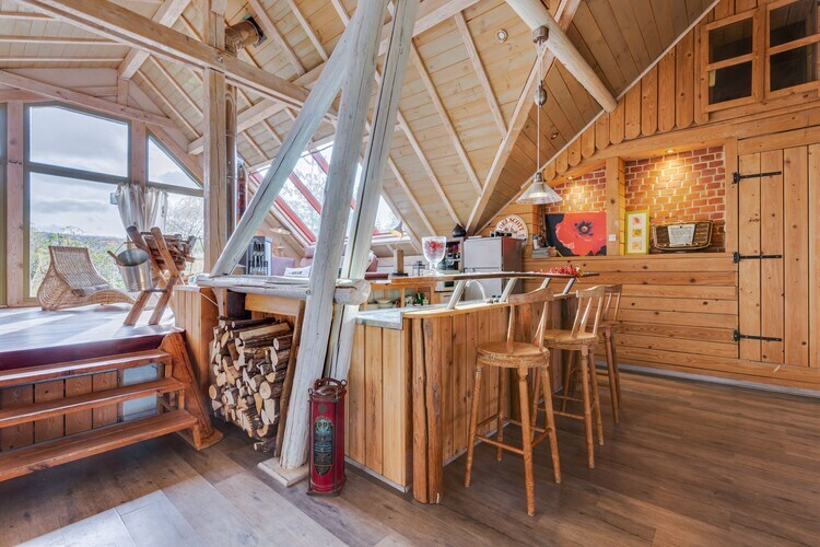 Au 1er étage: (Salle de séjour(poêle(bois)), cuisine ouverte(plaque de cuisson(électrique), four(mini), micro ondes, combinaison réfrigérateur/congélateur), chambre(lit simple, lit double, lit double), salle de bains(douche), WC, Lit double petite taille) Bain à bulles, sauna, chauffage(central), jardin(partagé avec d'autres clients), barbecue