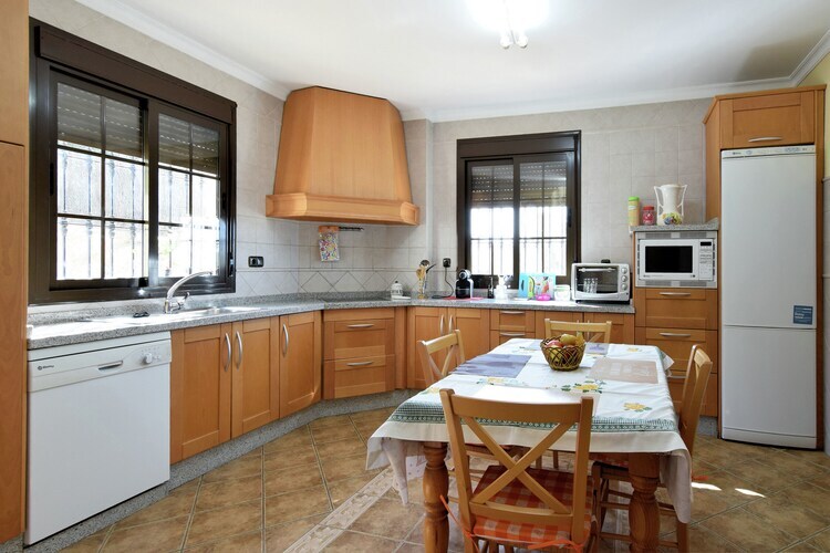 Rez-de-chaussée: (hall d'entrée, cuisine/salle à manger(table(4 personnes), plaque de cuisson(4 foyers, vitrocéramique), cafetière/percolateur(cups), four, micro ondes, lave-vaisselle , combinaison réfrigérateur/congélateur), salle à manger-salon(TV, table(6 personnes), Lecteur DVD), chambre(lit double(135 x 200 cm)), salle de bains(baignoire-douche, lavabo, WC), lit d'enfant) Au 1er étage: (chambre(lit double(180 x 200 cm), balcon, climatisation), chambre(2x lit simple(90 x 180 cm)), chambre(lit double(135 x 200 cm), balcon ou terrasse), salle de bains(Bain à bulles, douche, lavabo, WC, bidet)) abri pour voiture, chauffage, terrasse(couverte), jardin(clôturé), barbecue, parking, piscine(privé, 8 x 4 m., ouvert de Mai jusqu'à (inclus) Sept)