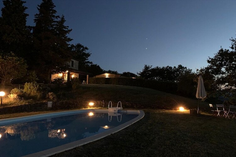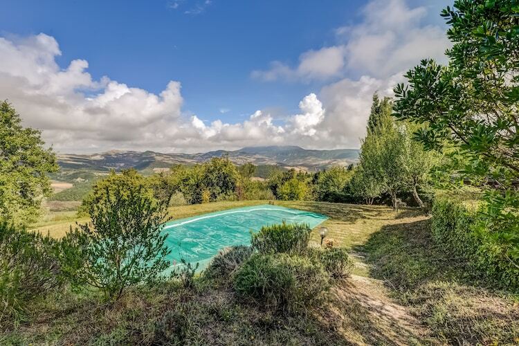 La piscine est située à l'avant de la maison et de là vous avez une vue magnifique sur le Mont Amiata, Radicofani et Monte Cetona.